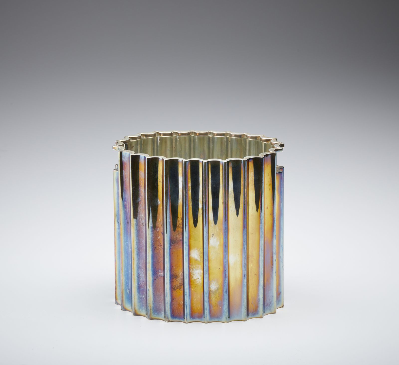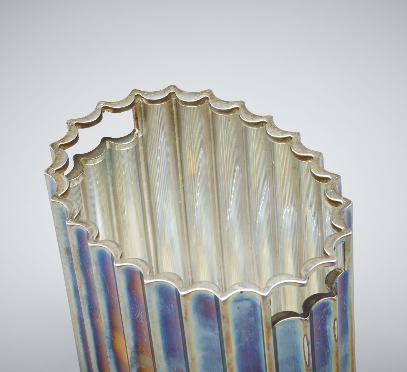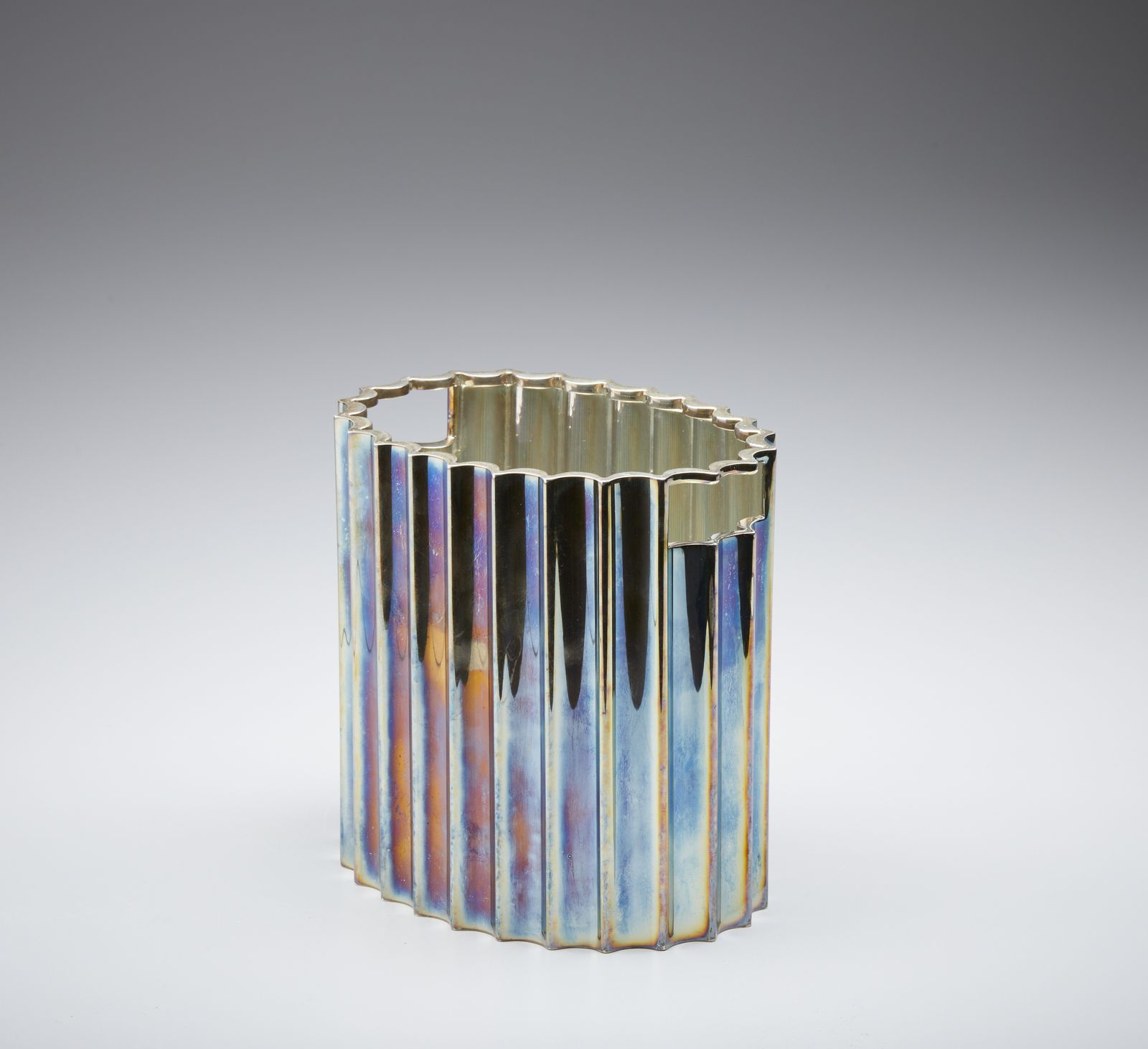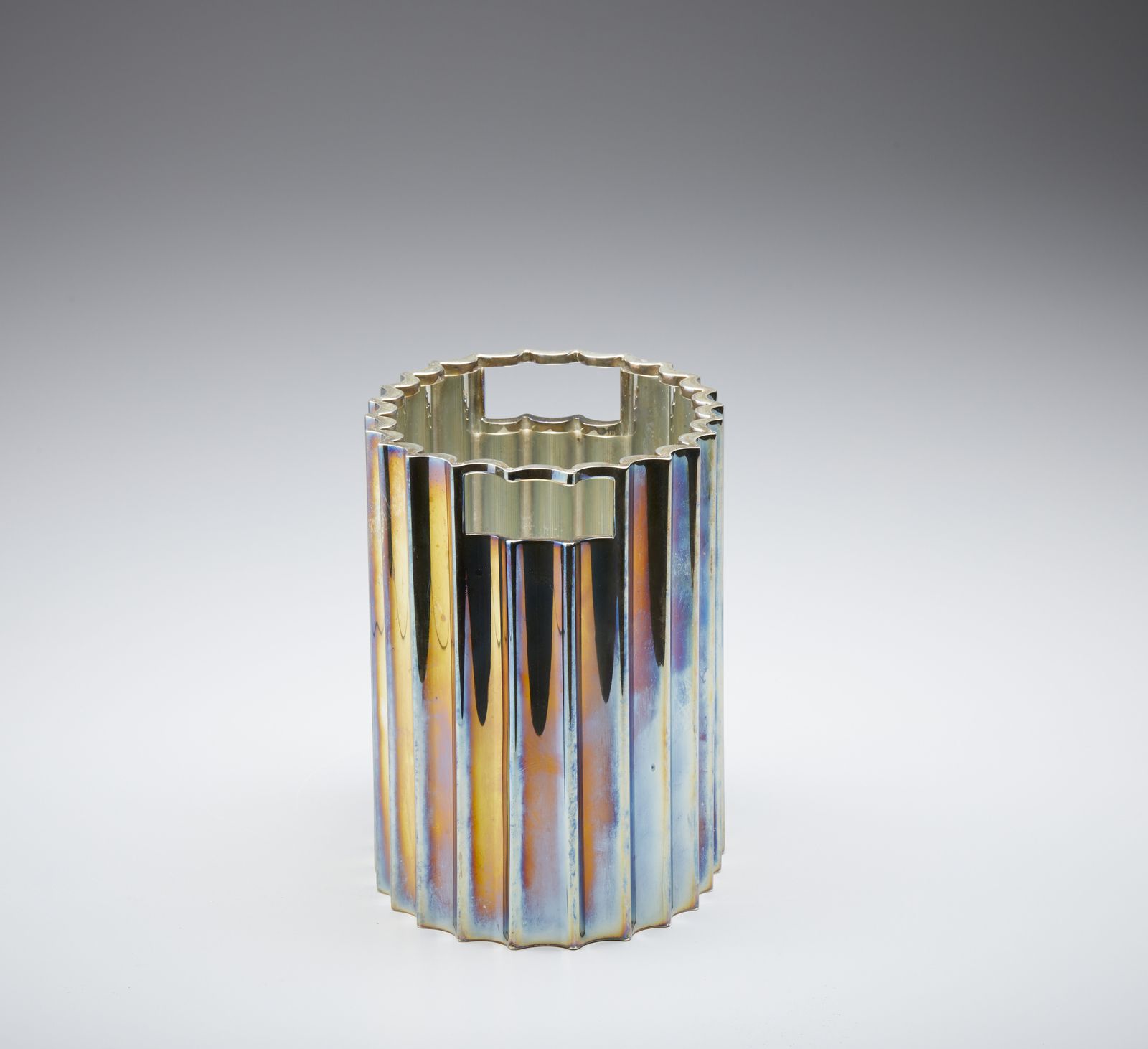 Porta bottiglia in argento con corpo scanalato e aperture laterali come anse