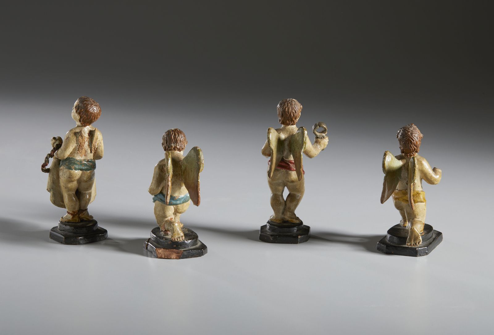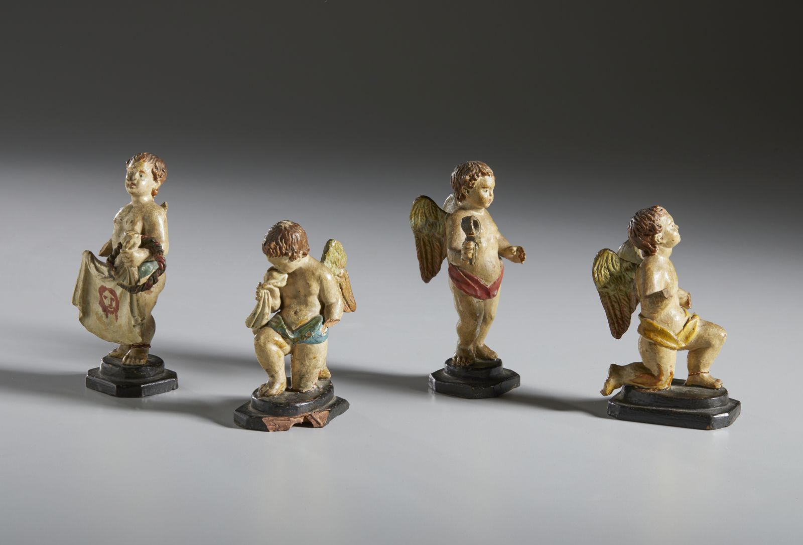 Quattro figure di angeli in terracotta policroma recanti i simboli della Passion [..]