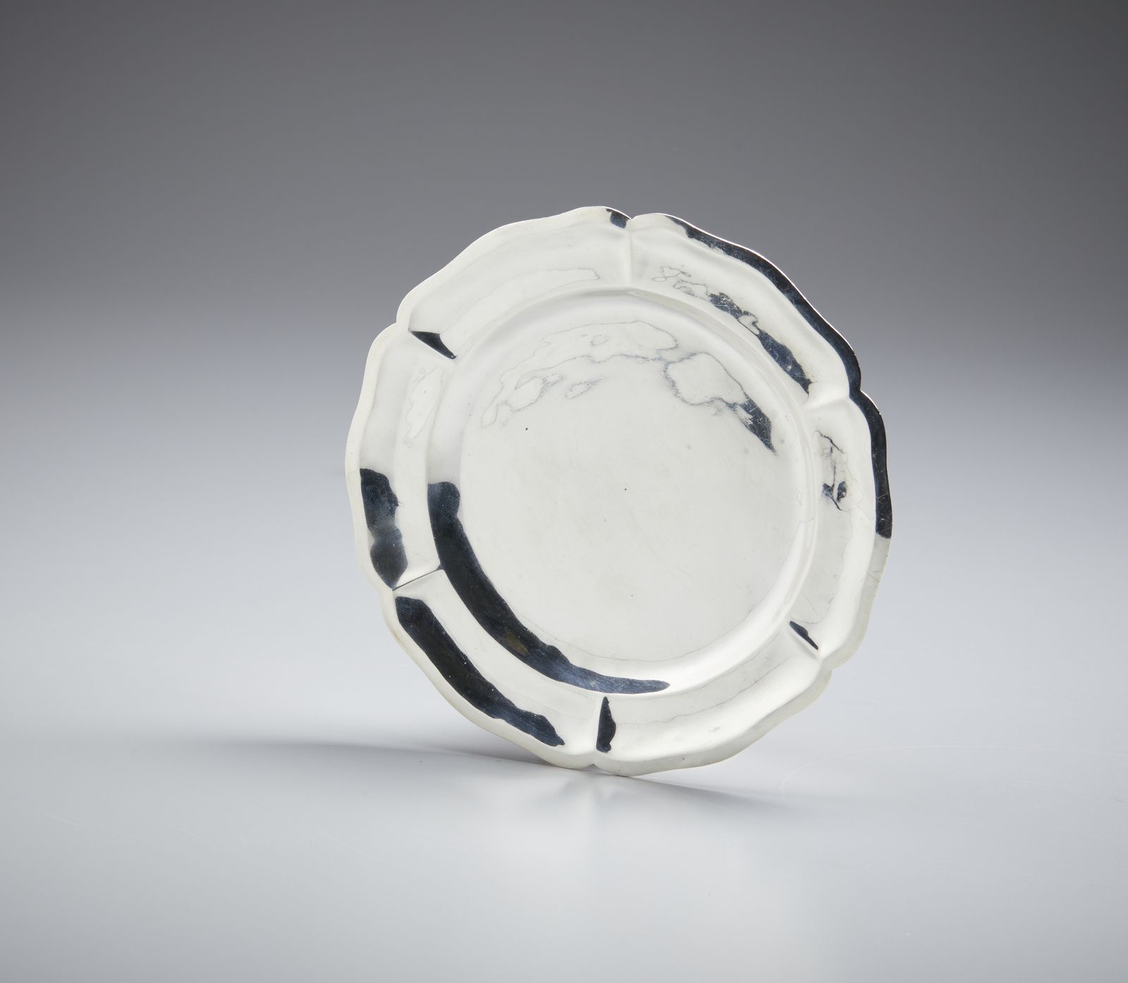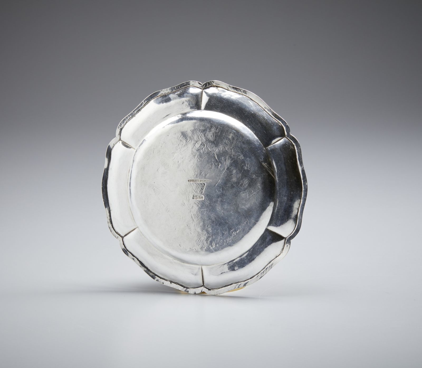 Servizio di 10 piattini in argento sbalzato con bordo di forma polilobata