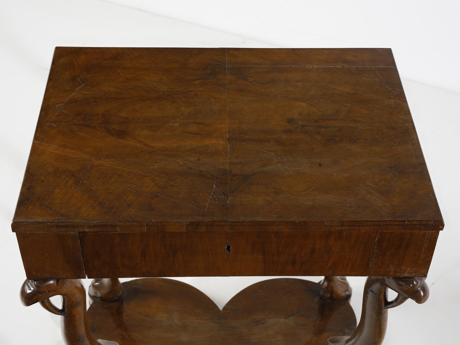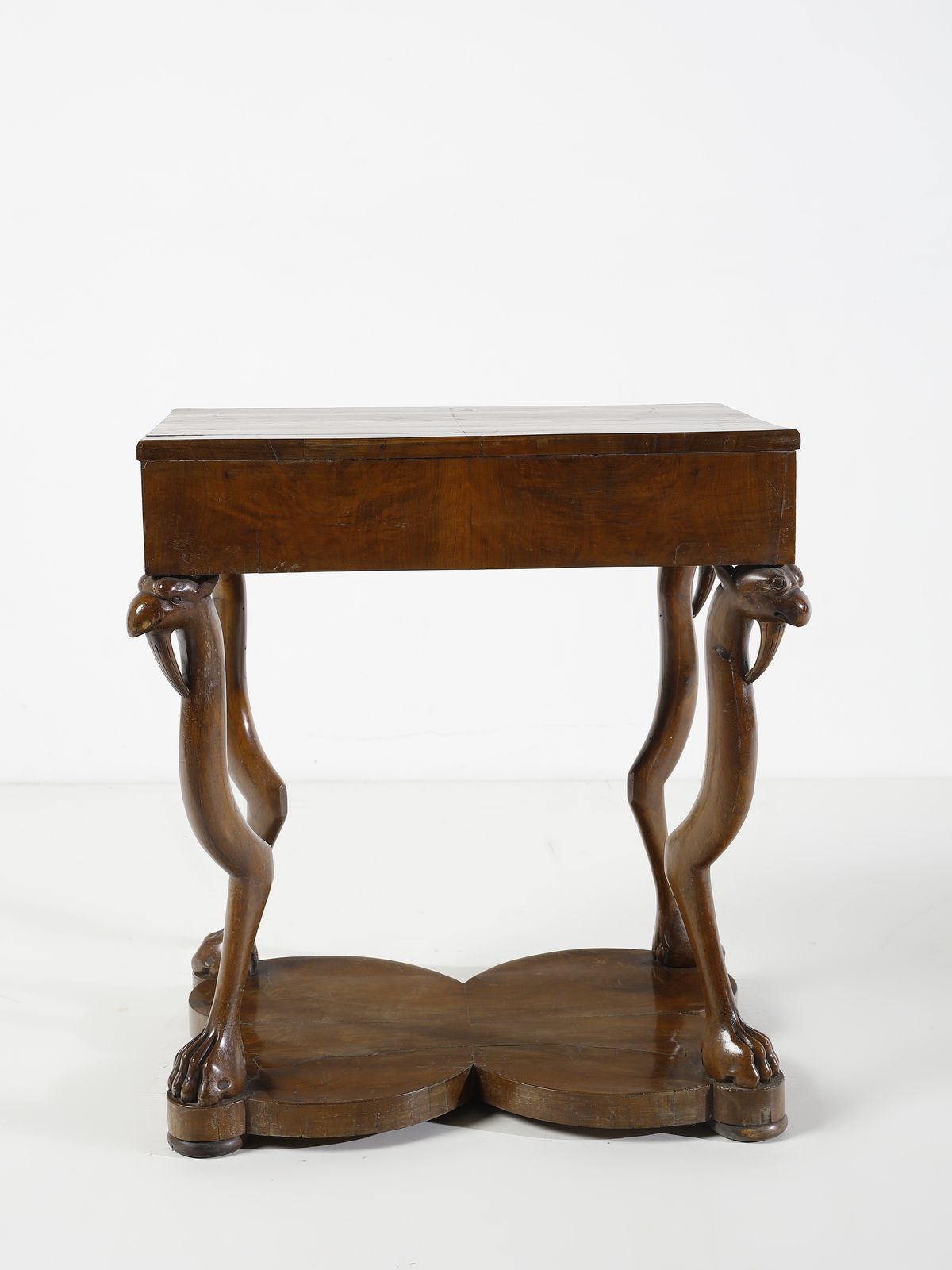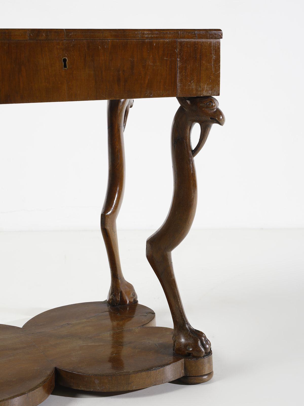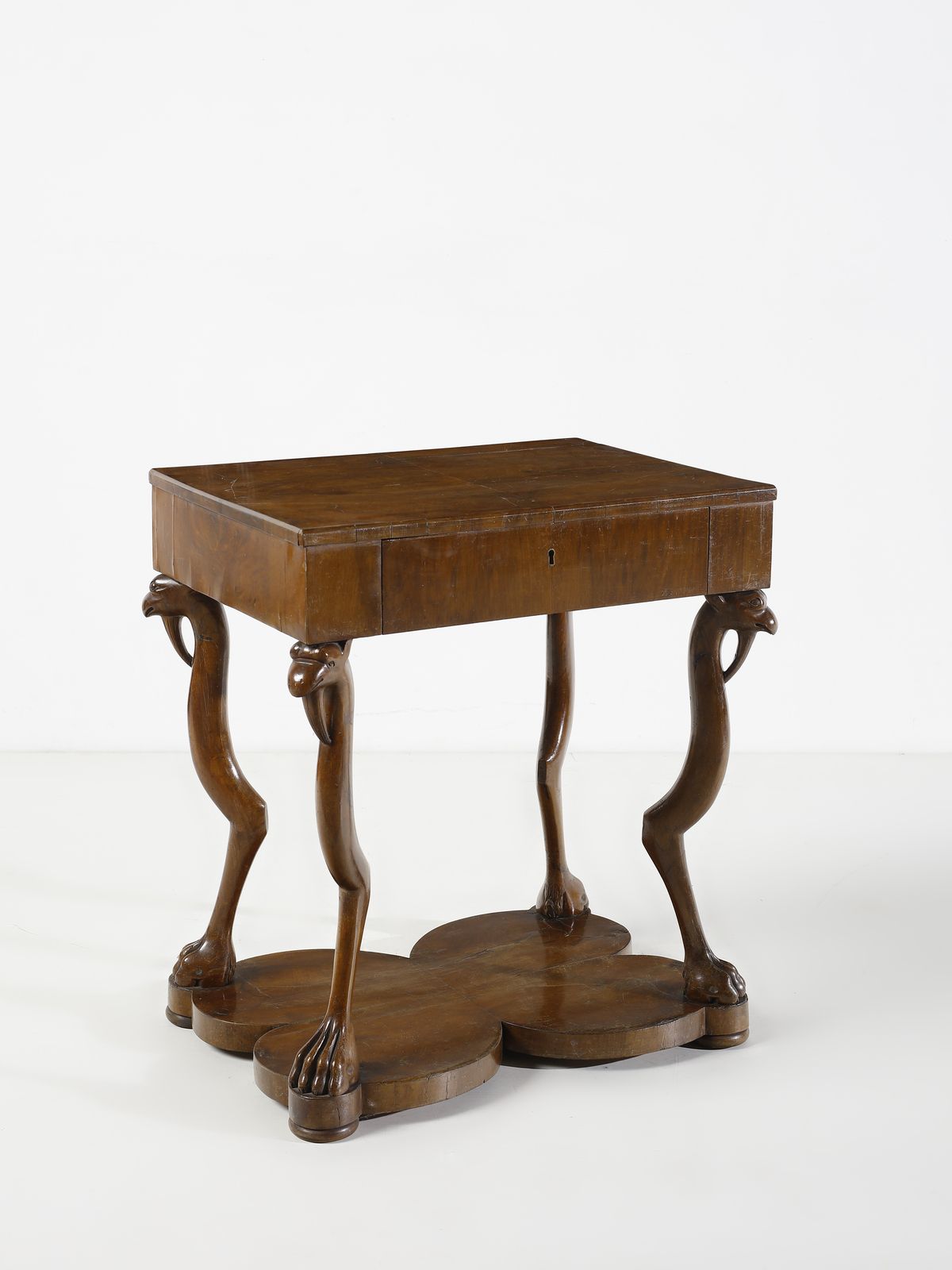 Tavolino lastronato con quattro sostegni in forma di grifi, terminanti con piedi [..]