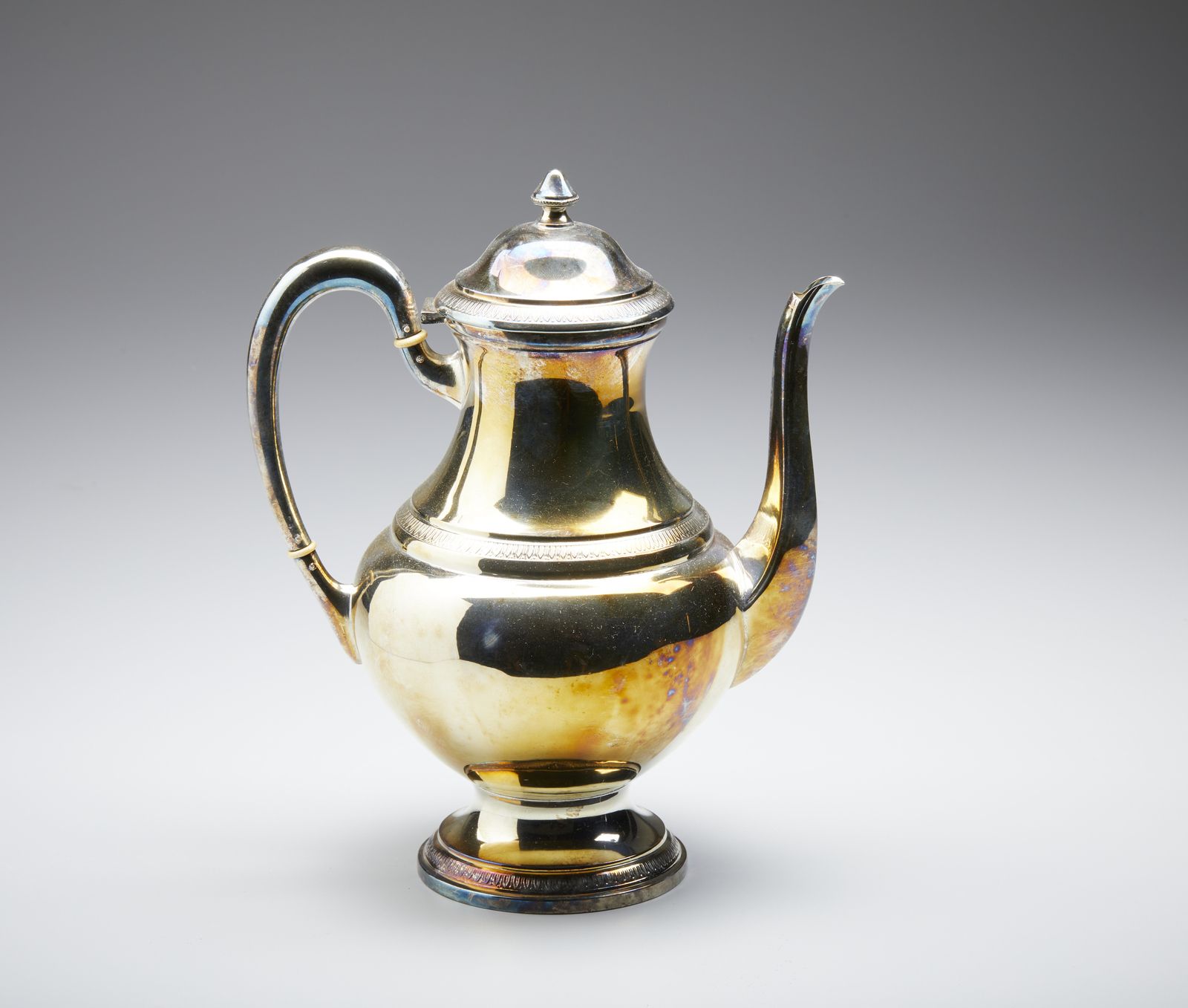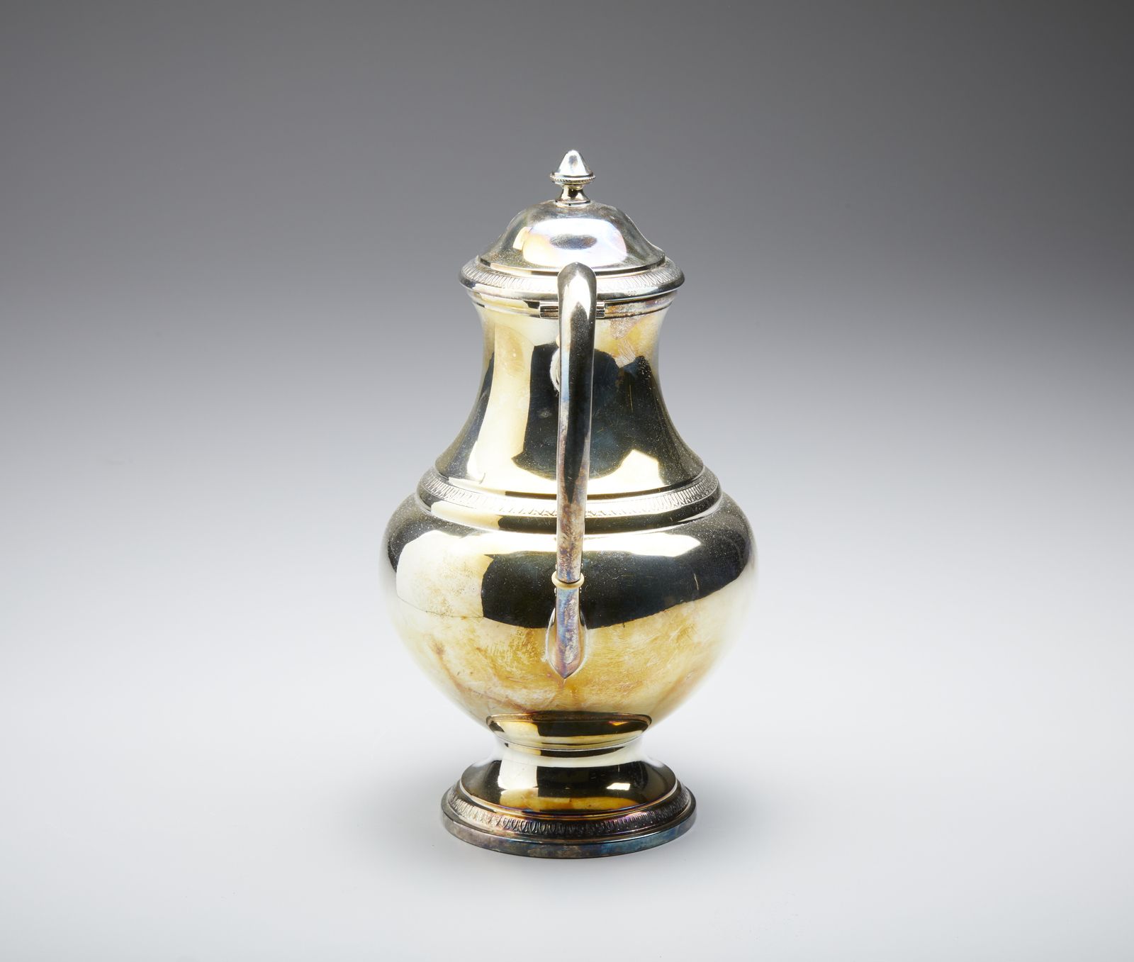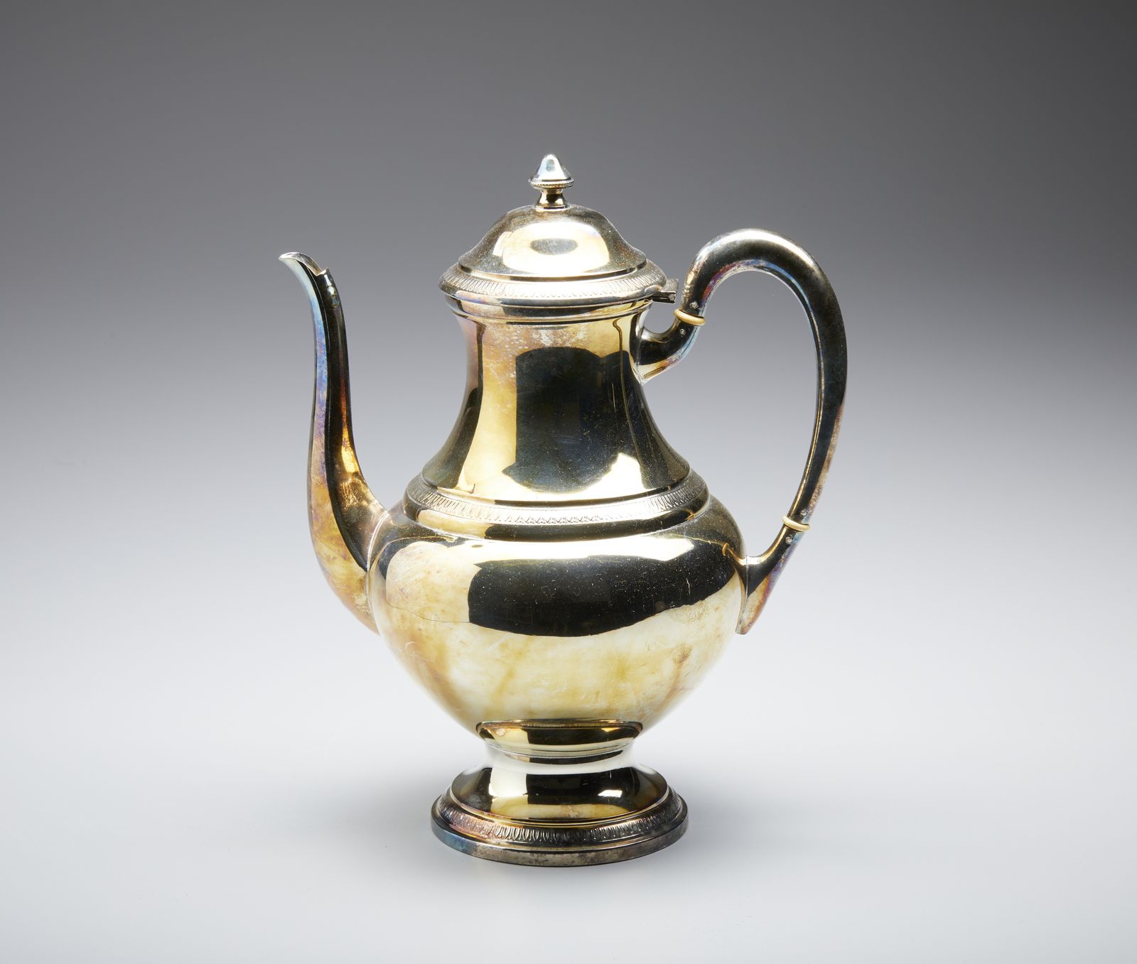 Teiera in argento, corpo piriforme poggiante su base circolare, con decorazioni [..]