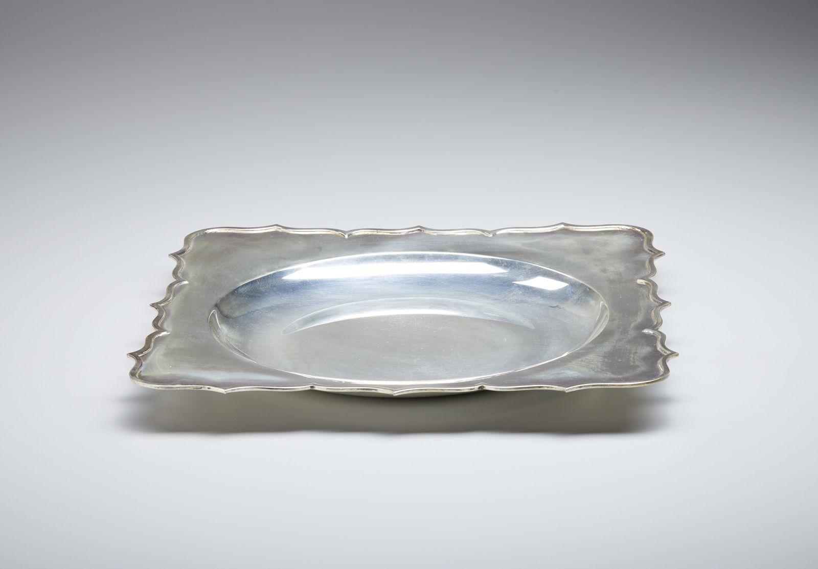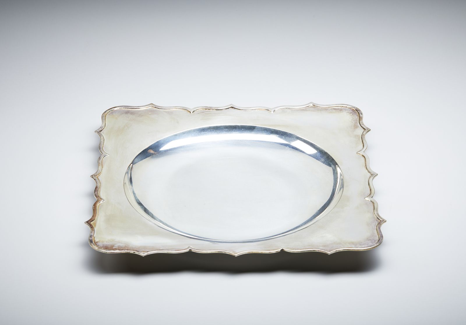 Vassoio di forma quadrata in argento con bordo esterno di forma mossa e profilo [..]