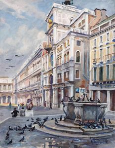 olio su tela, Largh. 50 - Alt. 60 cm 1986 firmato in basso a destra firmato e datato al retro