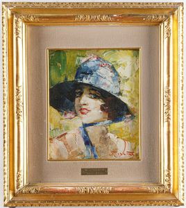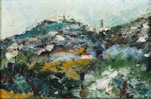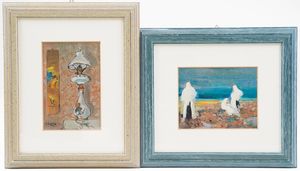 olio su carta applicata su tela, Largh. 37 - Alt. 45 cm