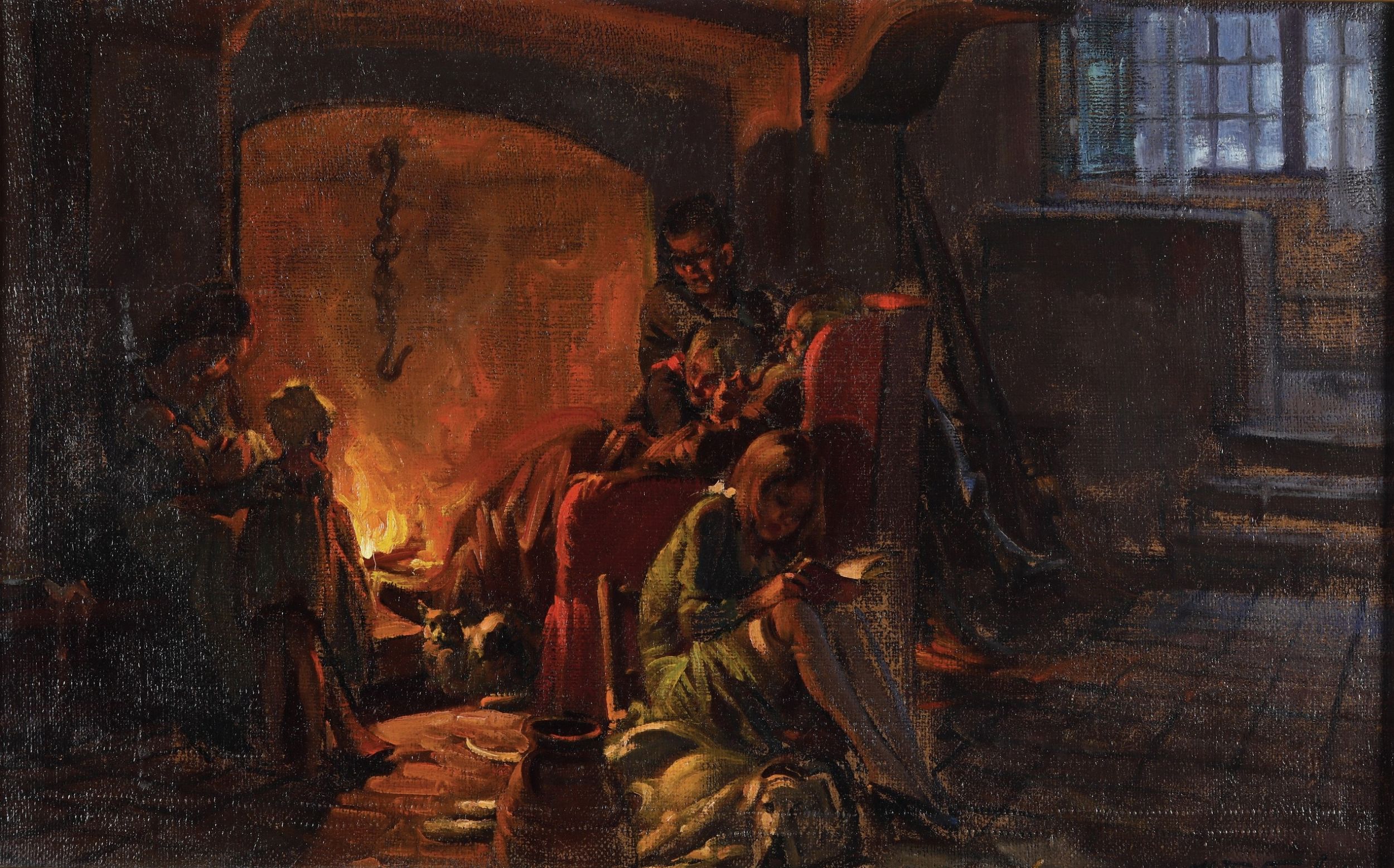 Figure davanti al caminetto