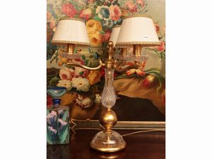 Lume da tavolo in vetro e metallo dorato
