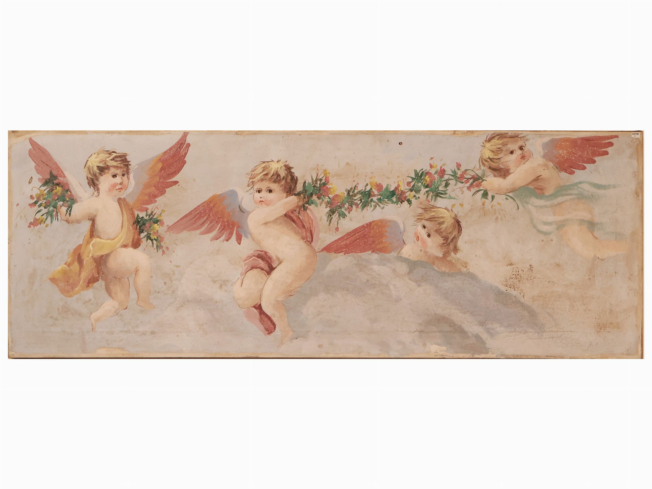 Pannello decorativo con puttini e fiori
