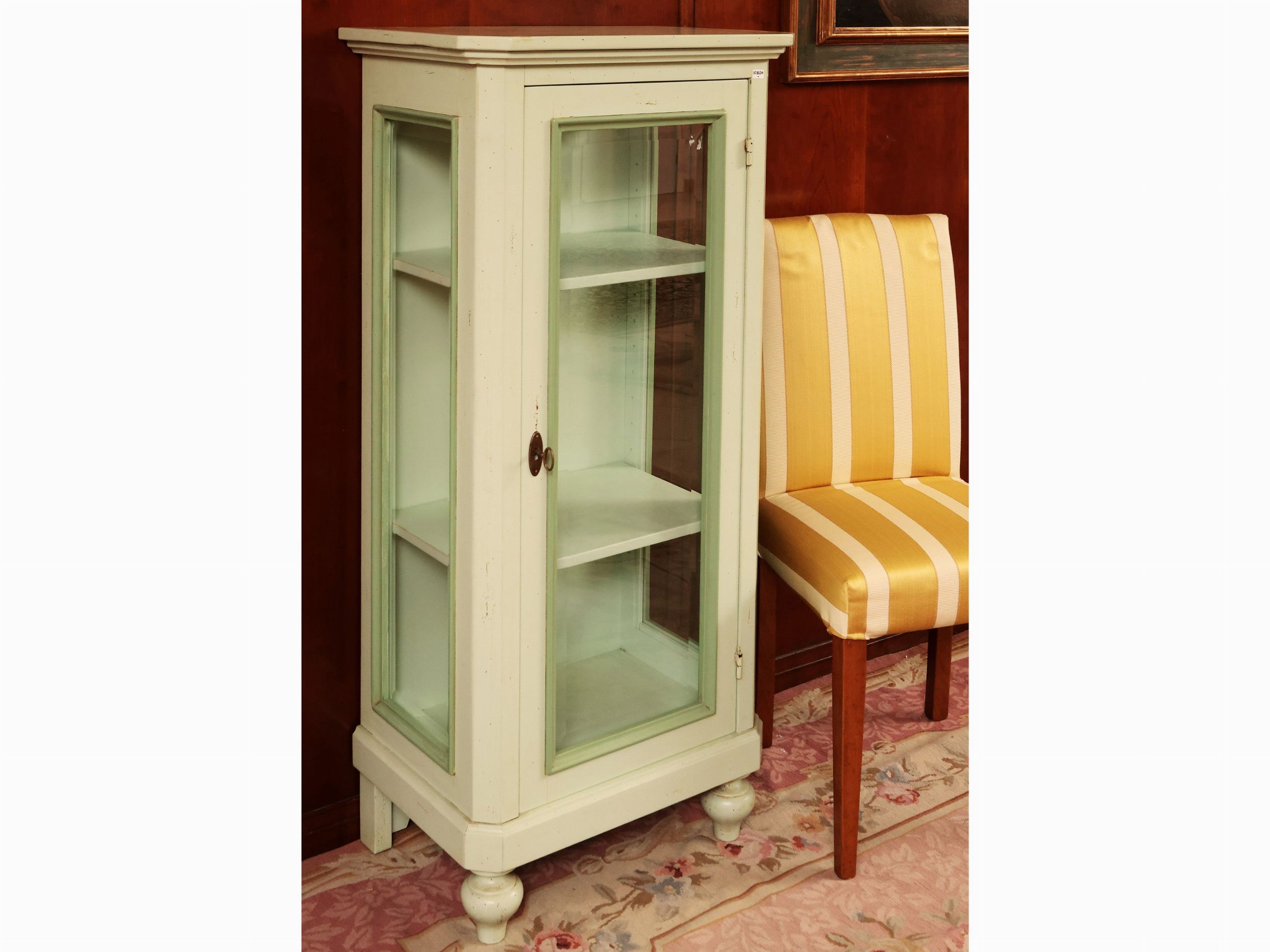 Vetrina per collezioni in legno laccato verde menta