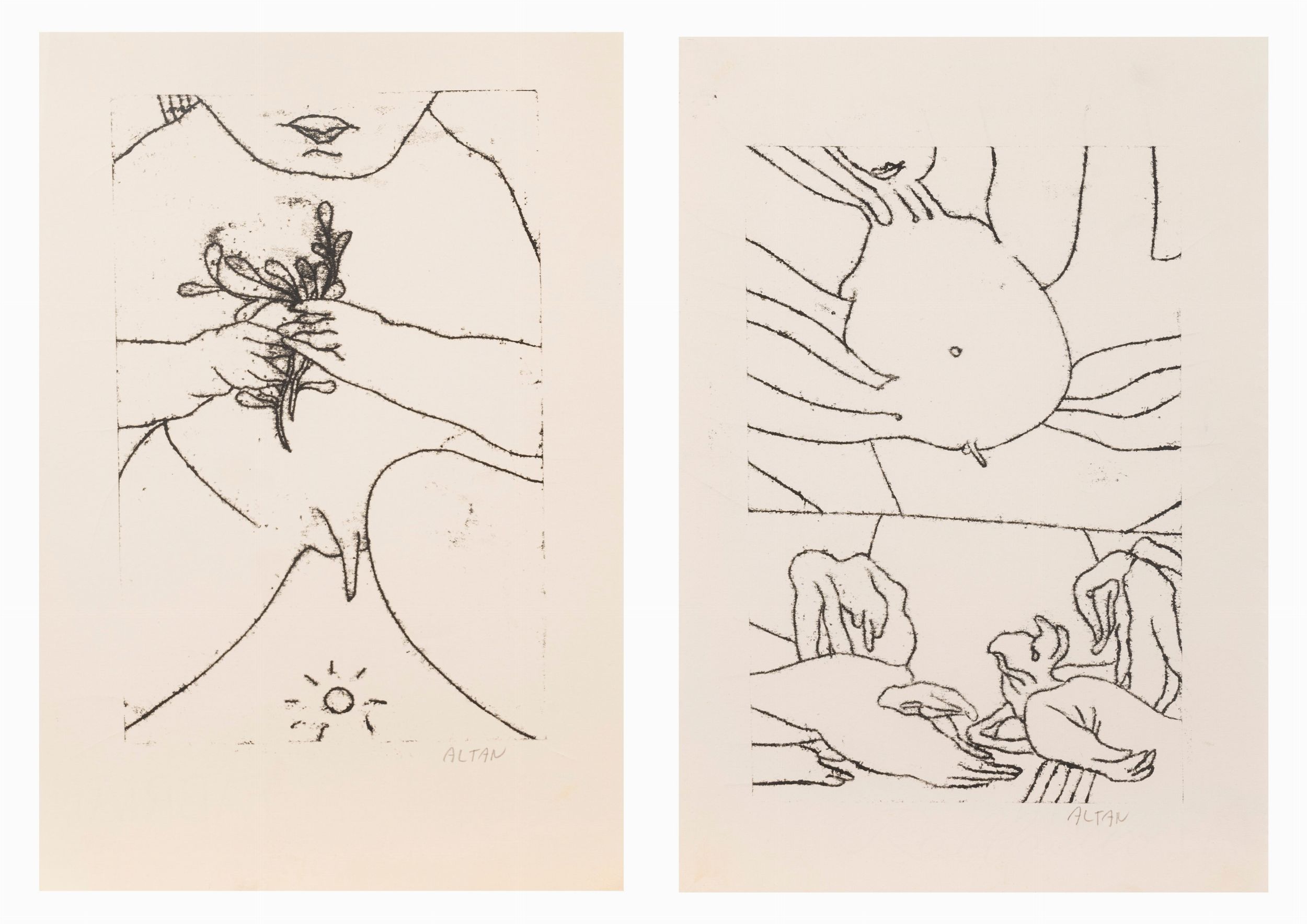 Due monotipi su carta, 1968-1970.