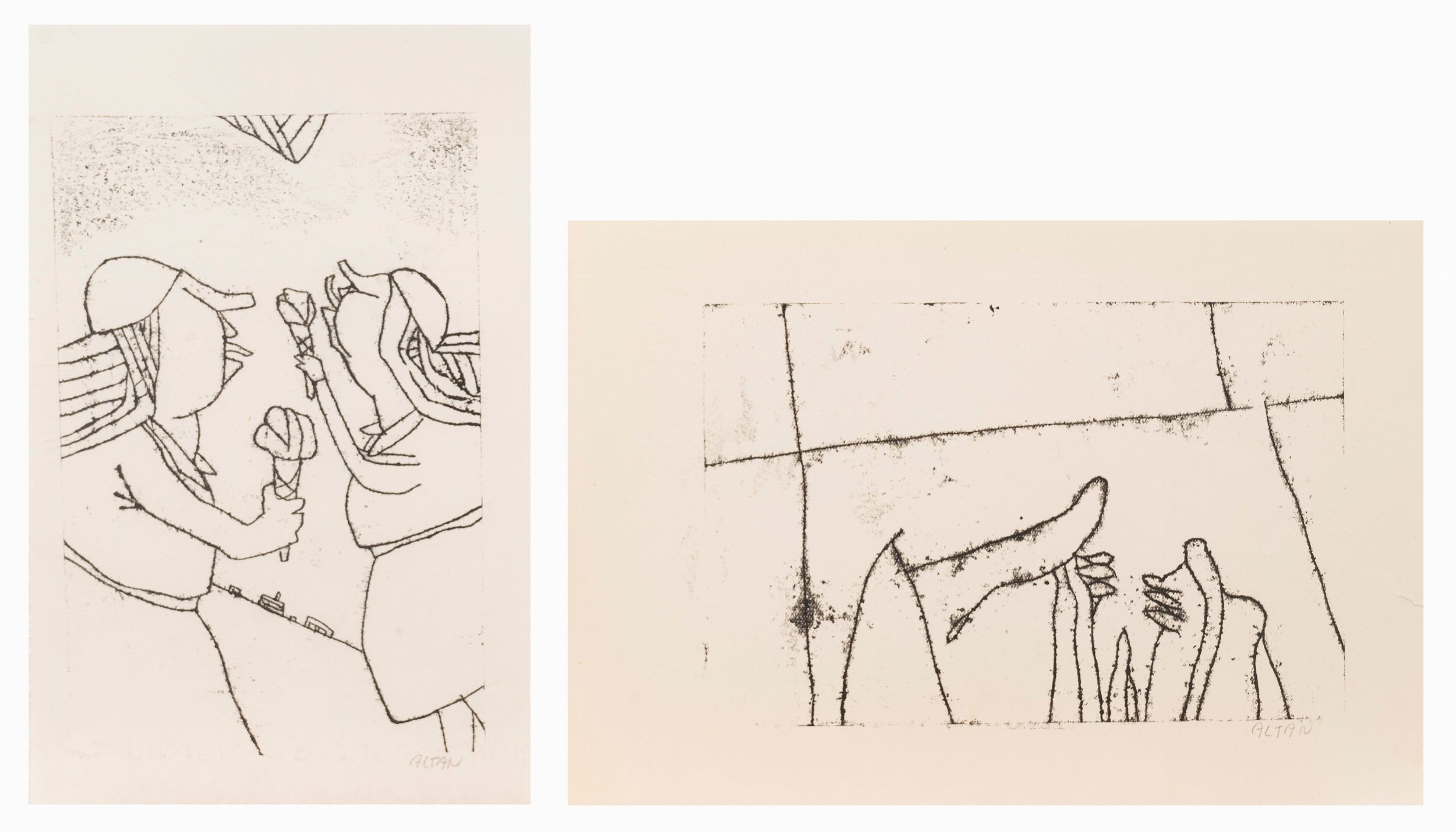 Due monotipi su carta, 1968-1970.