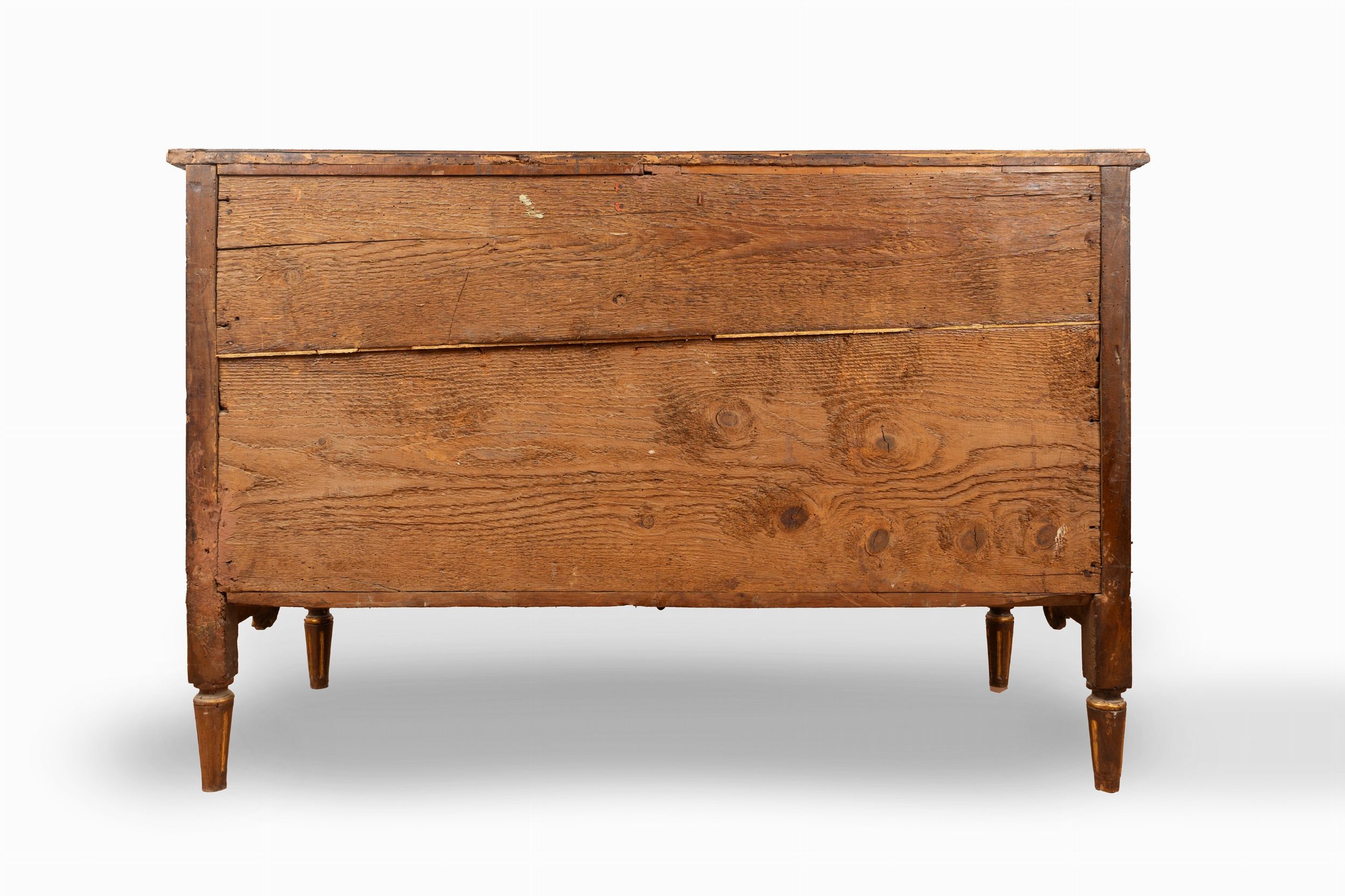 a tre cassetti, in legno intagliato con fregi dorati, maniglie in bronzo dorato levi difetti e integrazioni