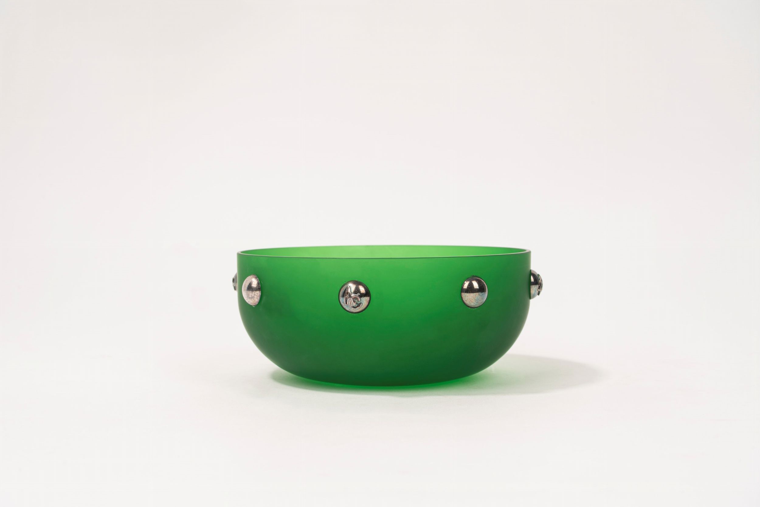 Ciotola in vetro satinato verde di Murano, Cleto Munari
