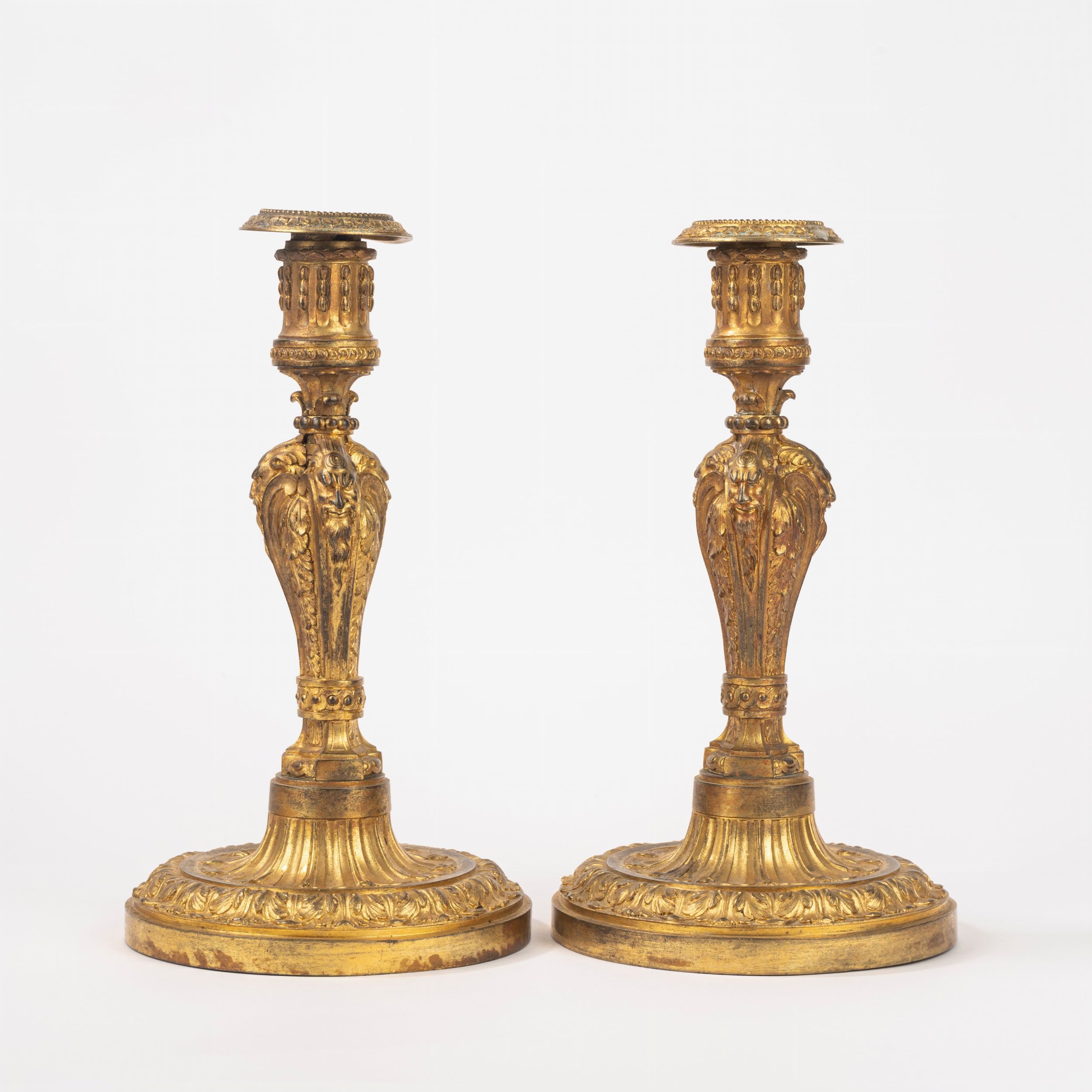 Coppia di candelieri in bronzo dorato, Francia secolo XIX