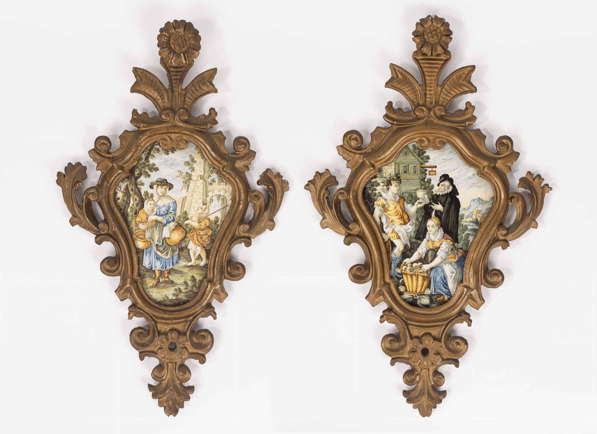 Coppia di maioliche sagomate, manifattura Castelli, secolo XVIII