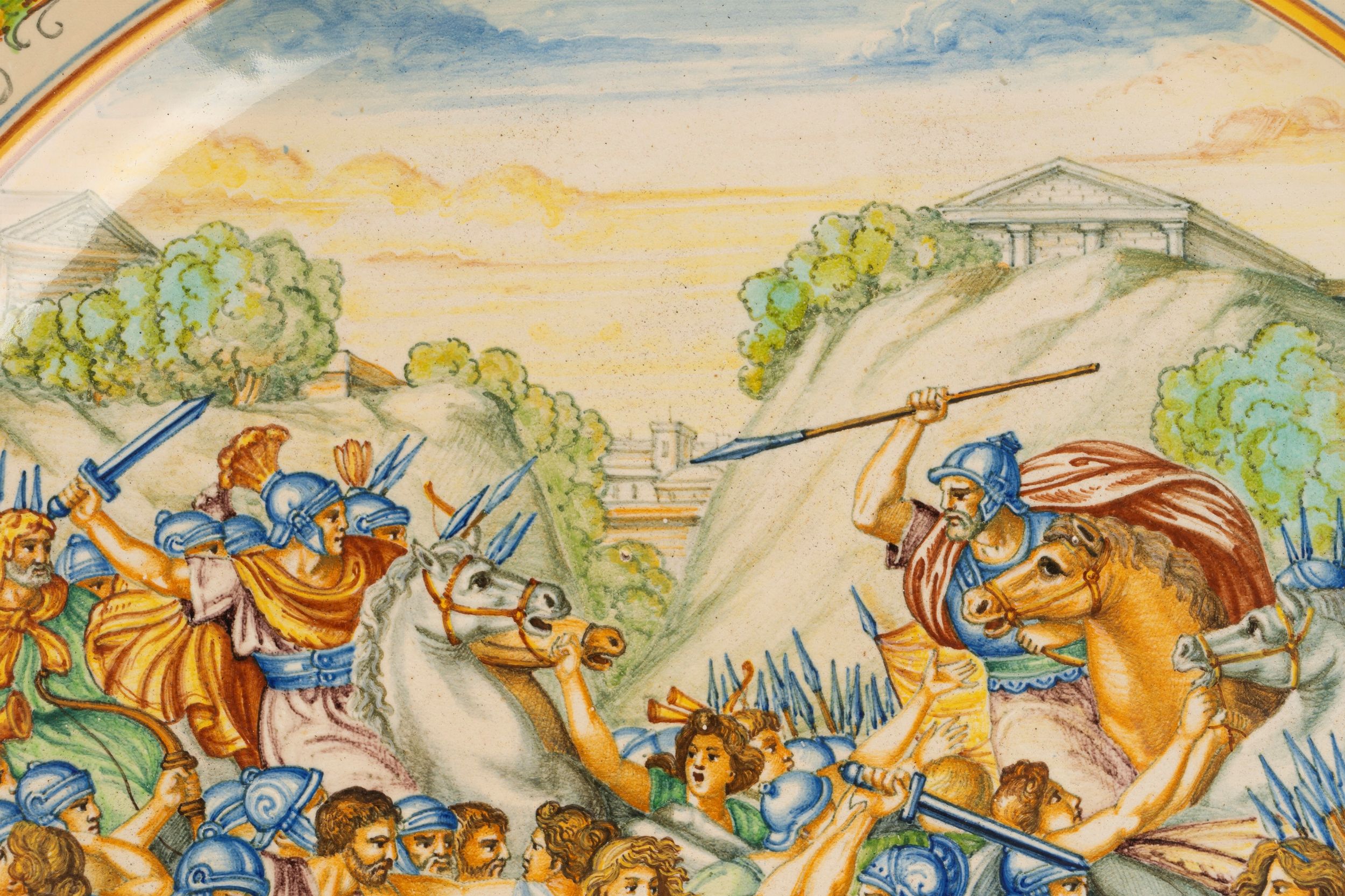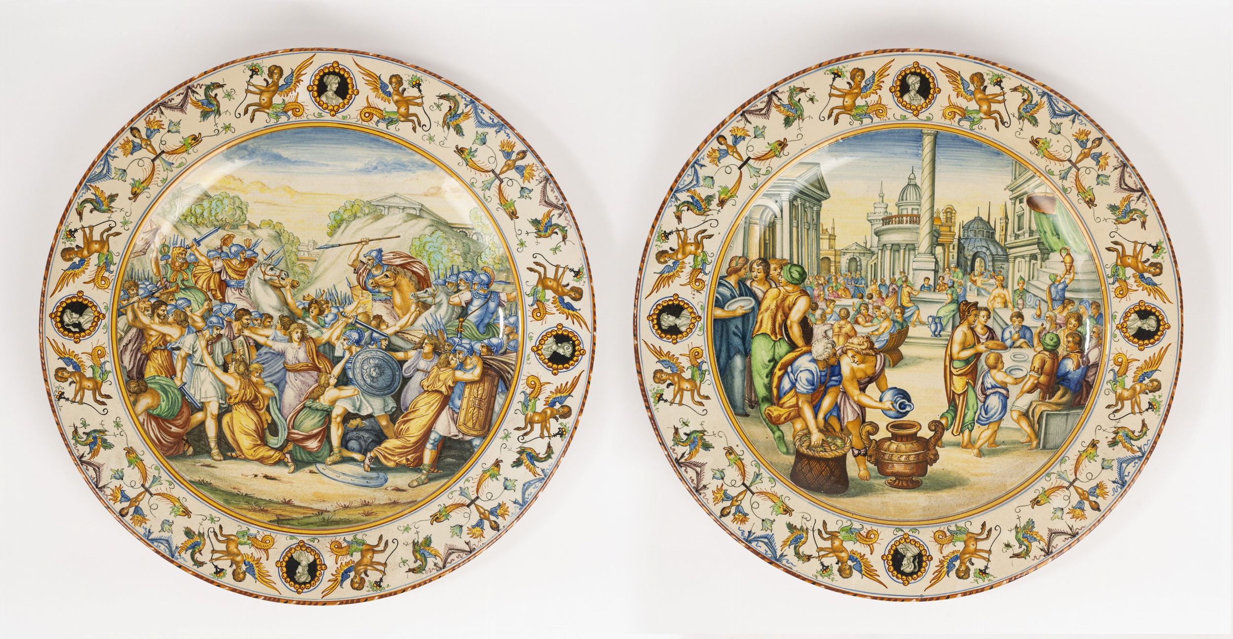 Coppia di piatti istoriati in maiolica, secoli XIX-XX
