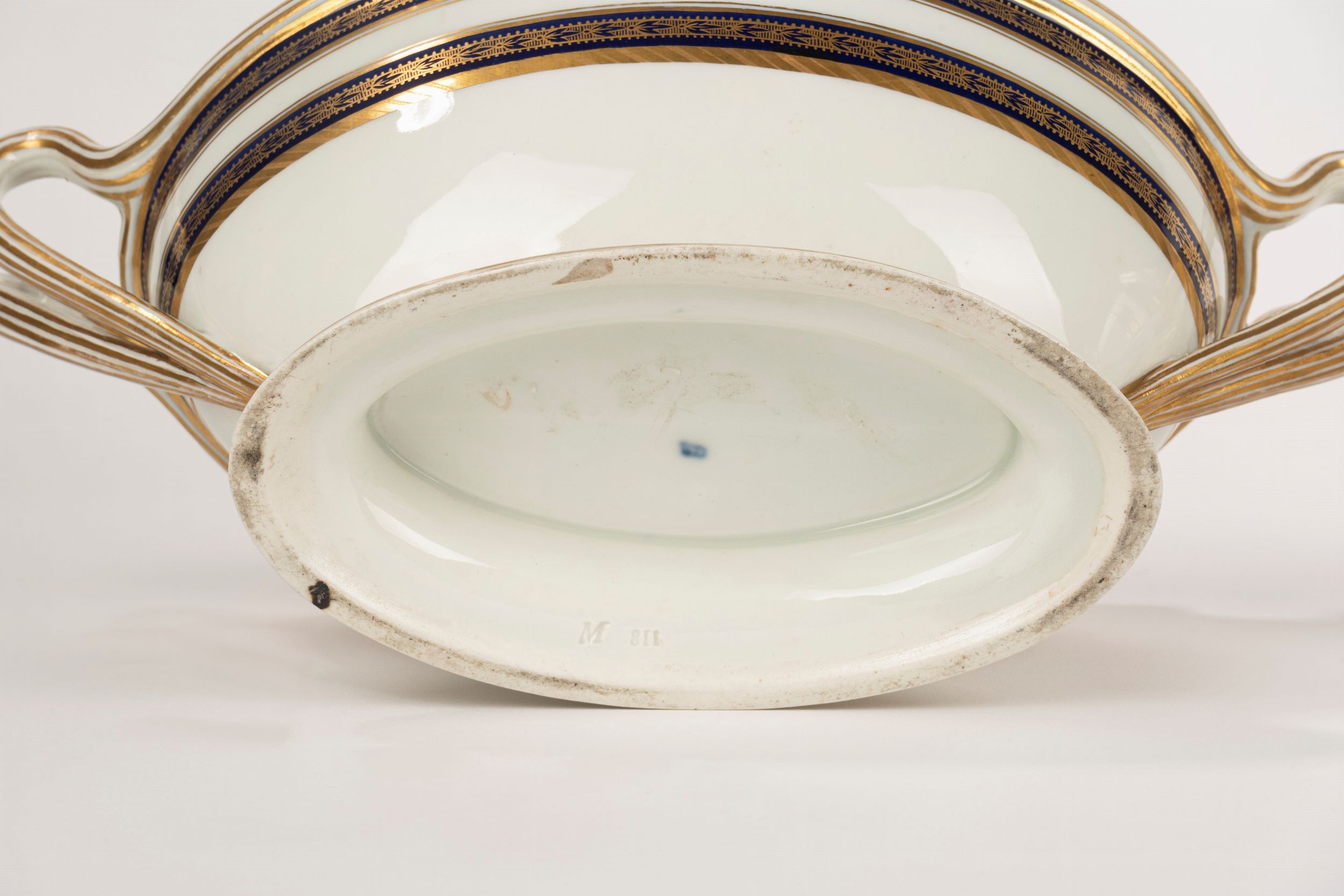 Coppia di rinfrescatoi in porcellana bianca con decori in blu e oro, inizi secolo [..]