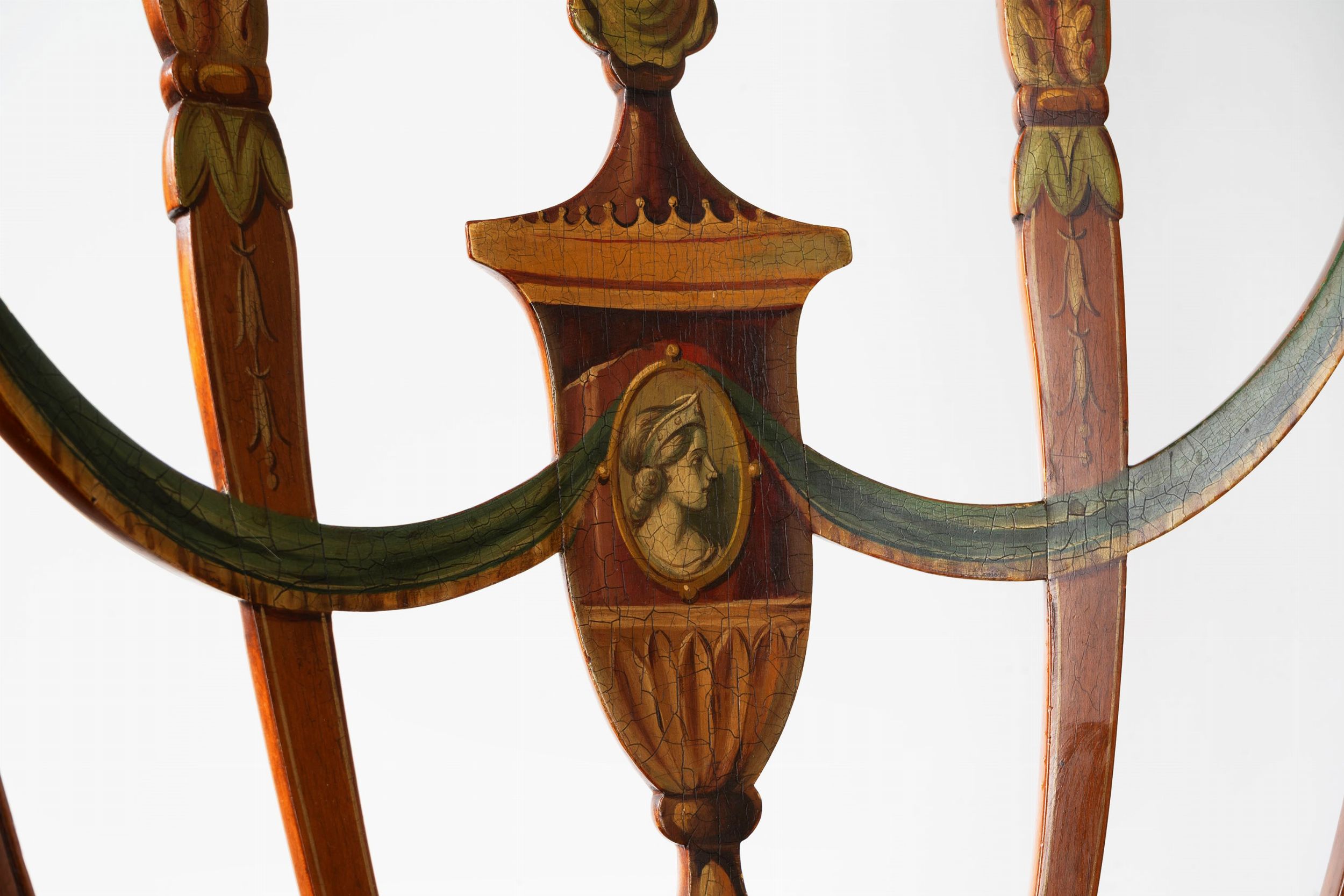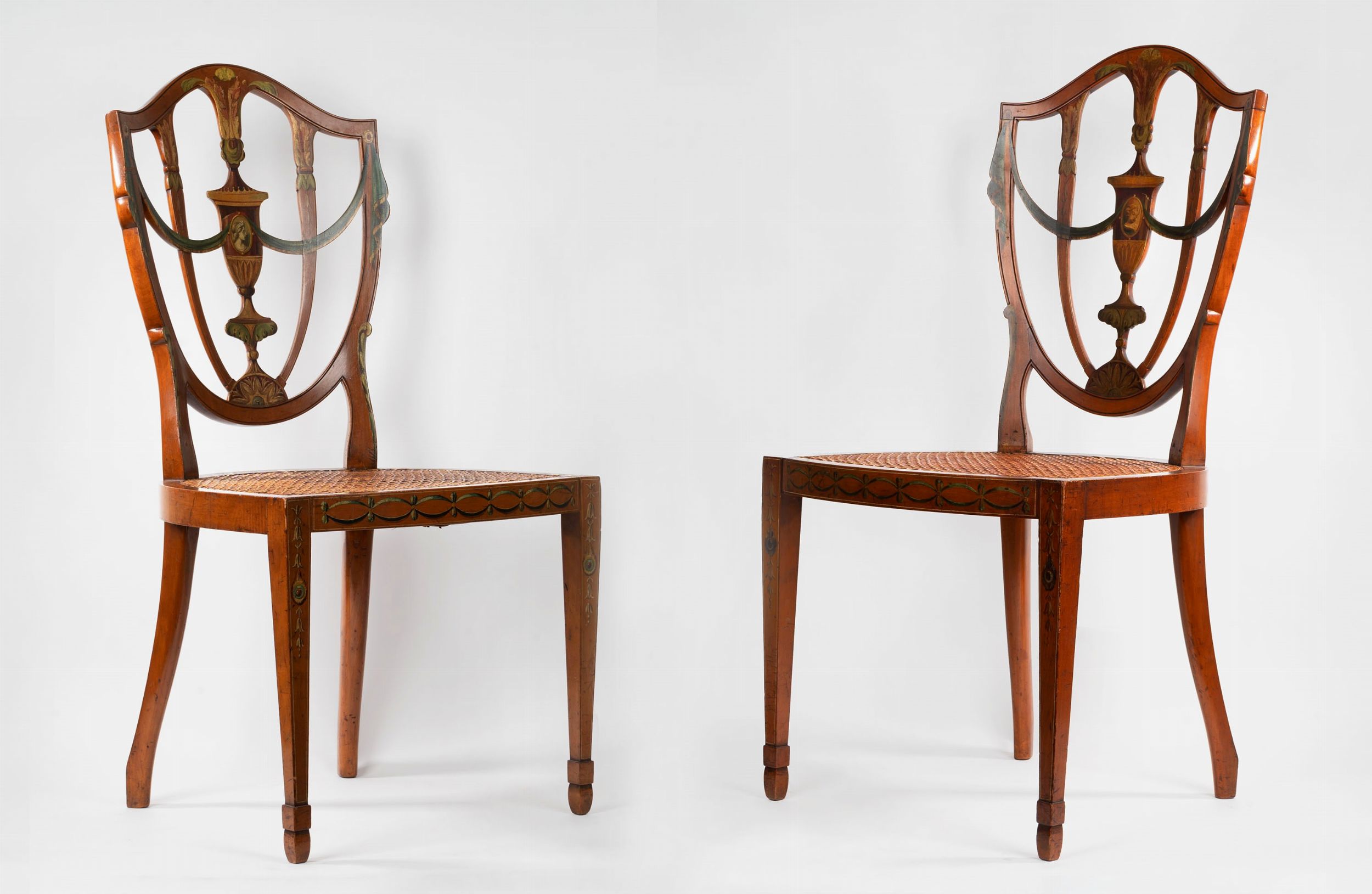 Coppia di sedie in legno intagliato e dipinto, con seduta in paglia di Vienna, Inghilterra [..]