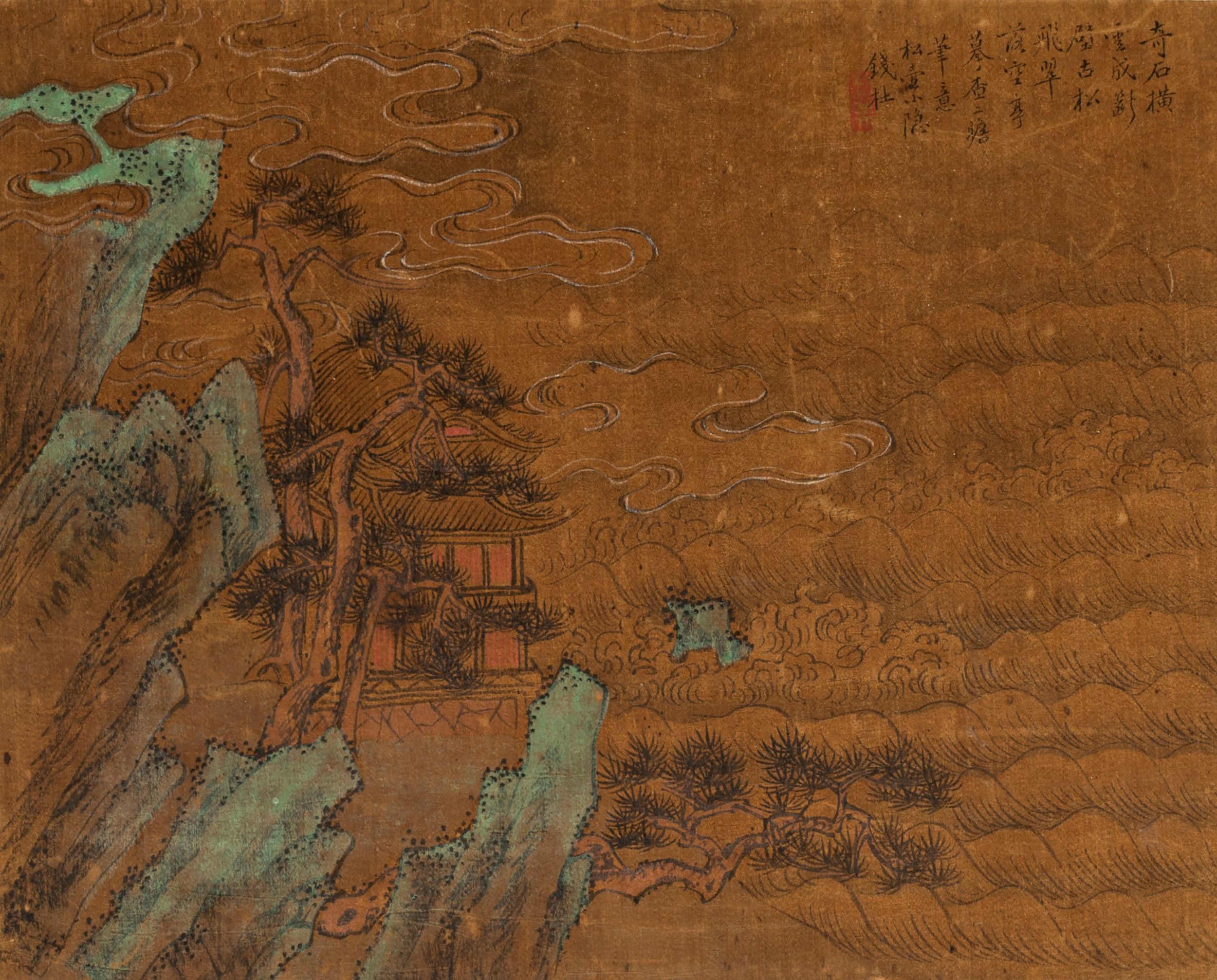Dipinto su seta raffigurante paesaggio, Cina secolo XIX