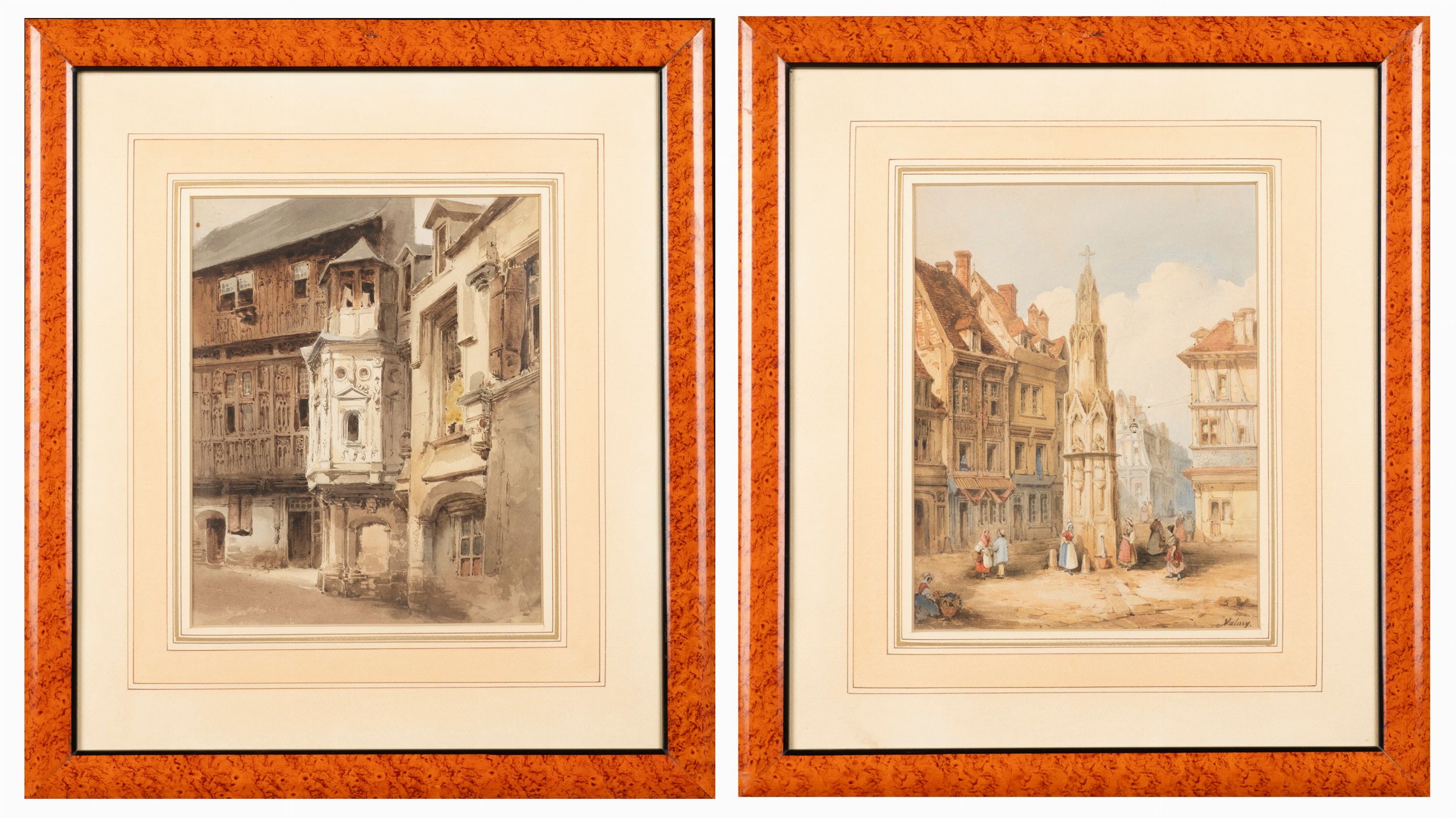 Due acquerelli raffiguranti vedute di cittÃ