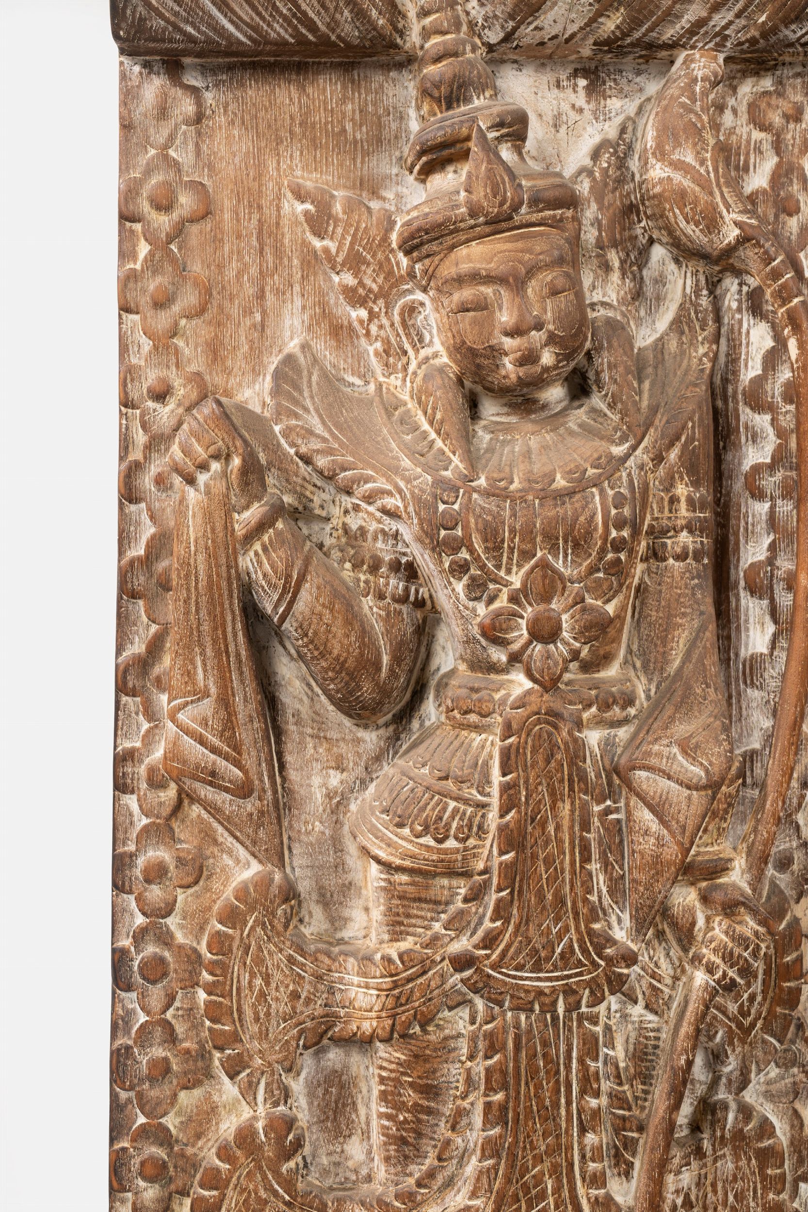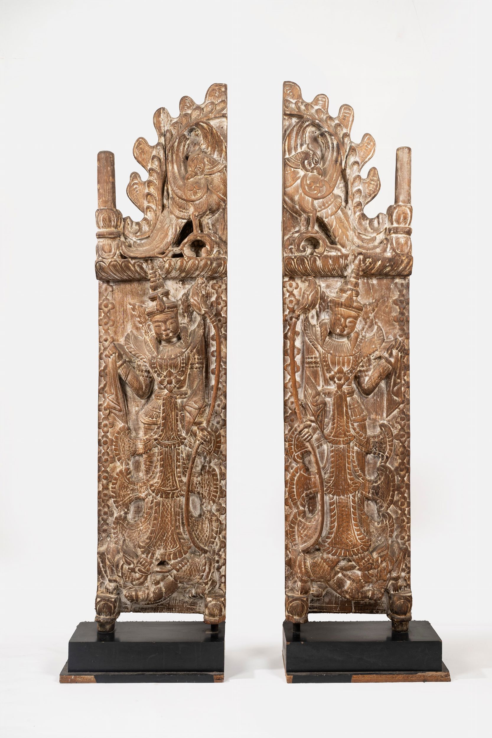 Due ante di porta in legno intagliato, Birmania o Thai, fine secolo XIX - inizi [..]