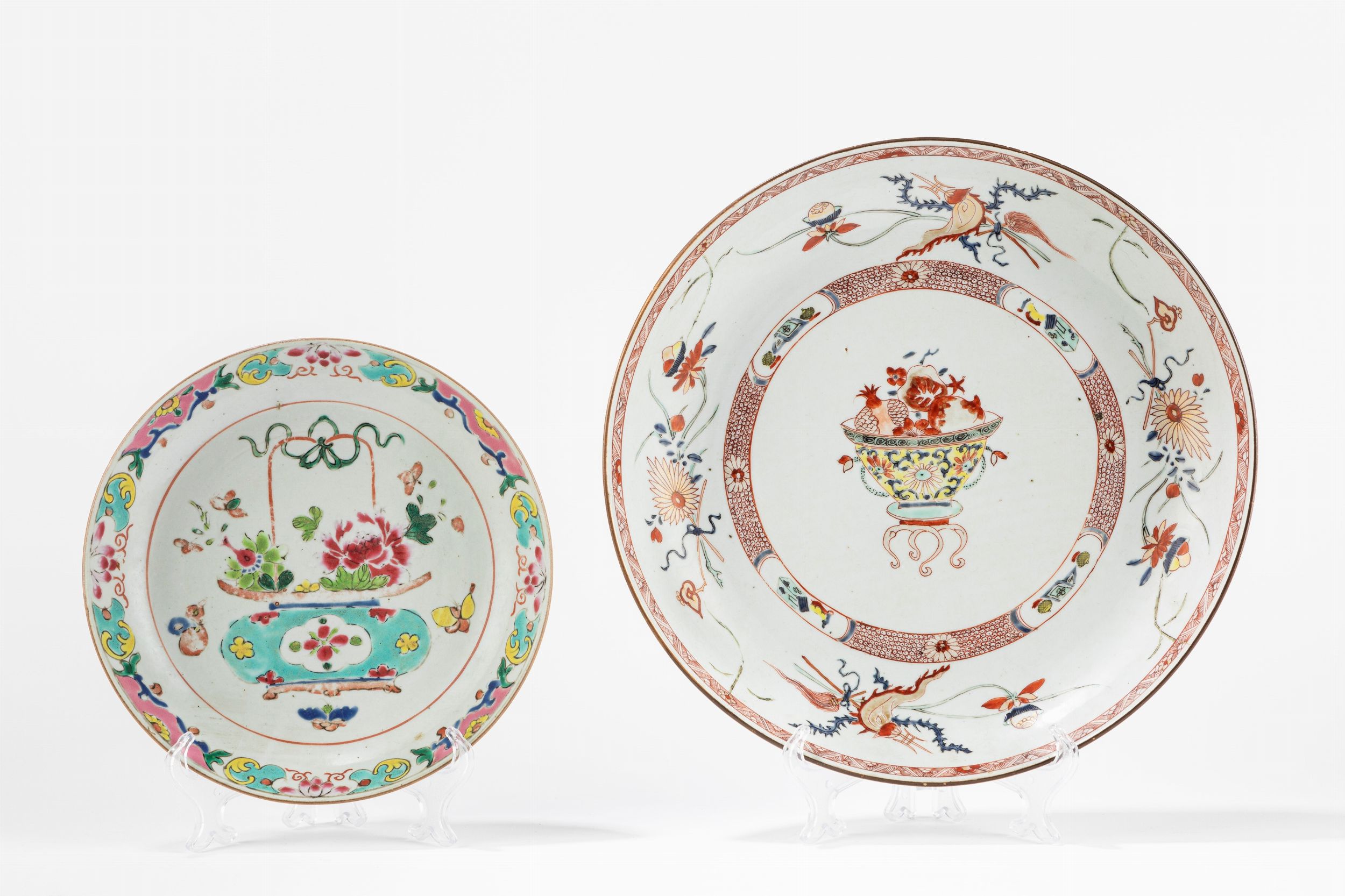 Cina, secolo XVIII il più piccolo decorato con un vaso di fiori; il più grande con vaso con melograni (difetti)