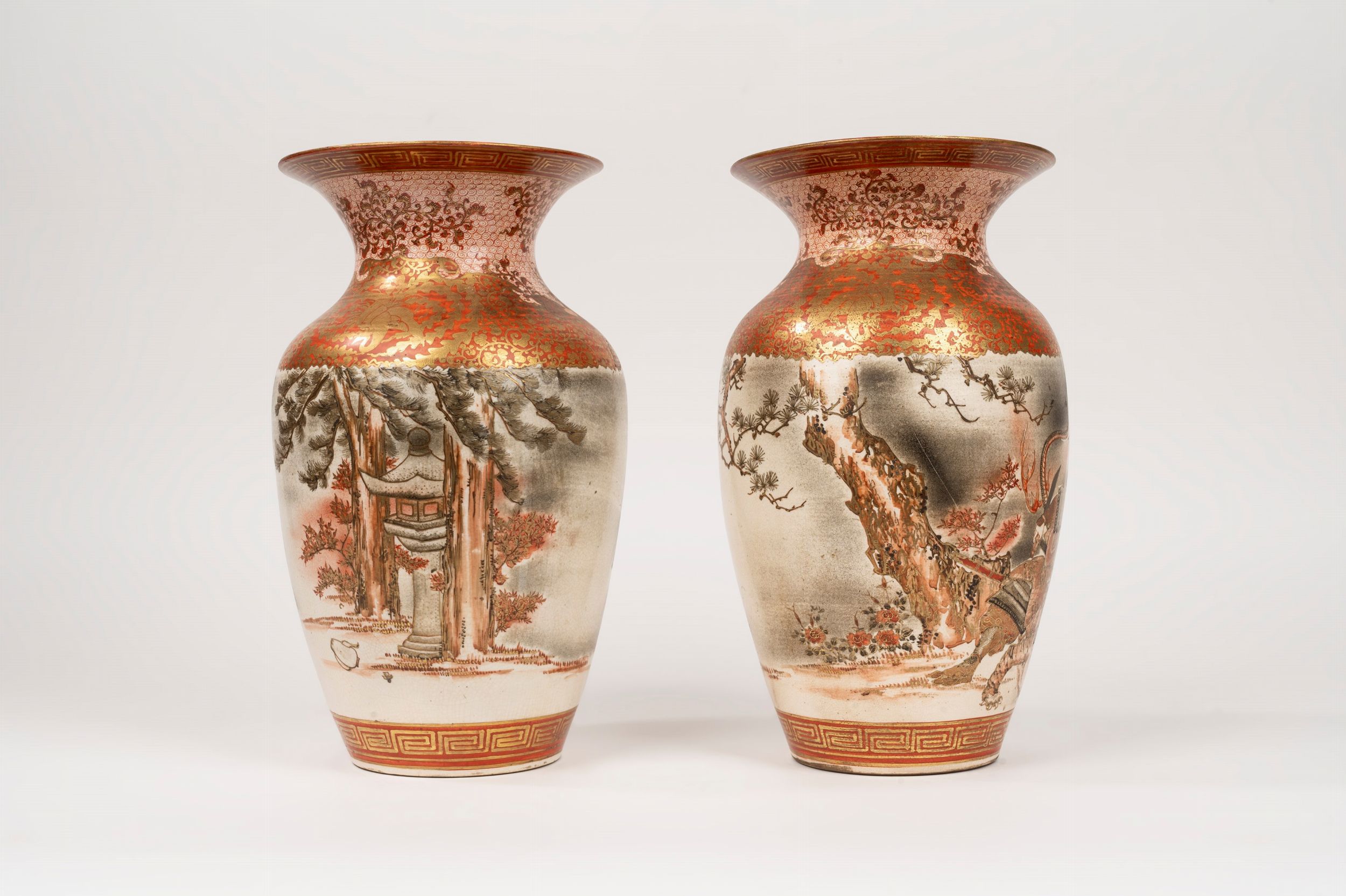 Due vasi in porcellana policroma Kutani, Giappone periodo Meiji