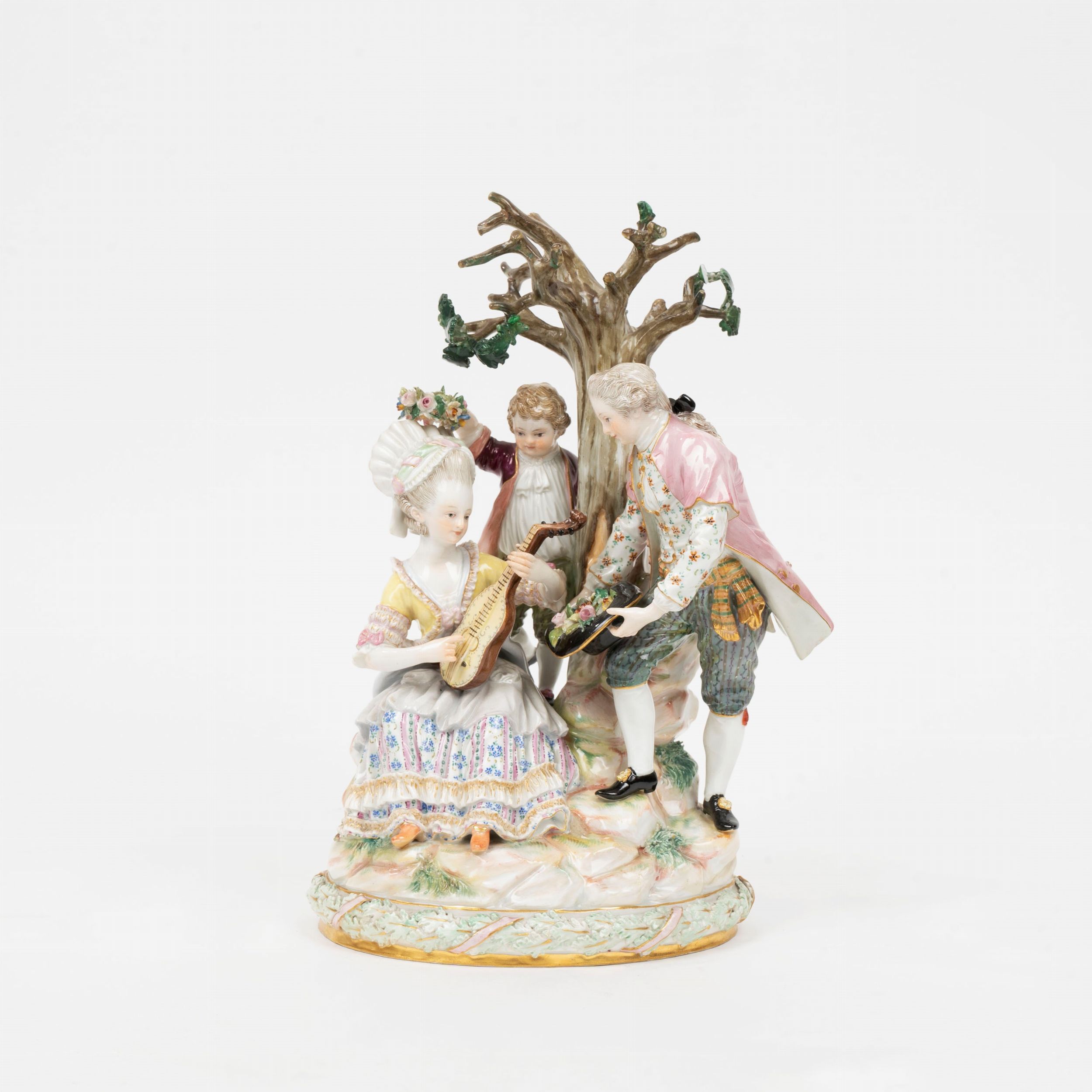 Gruppo scultoreo in porcellana policroma raffigurante scena galante, manifattura [..]
