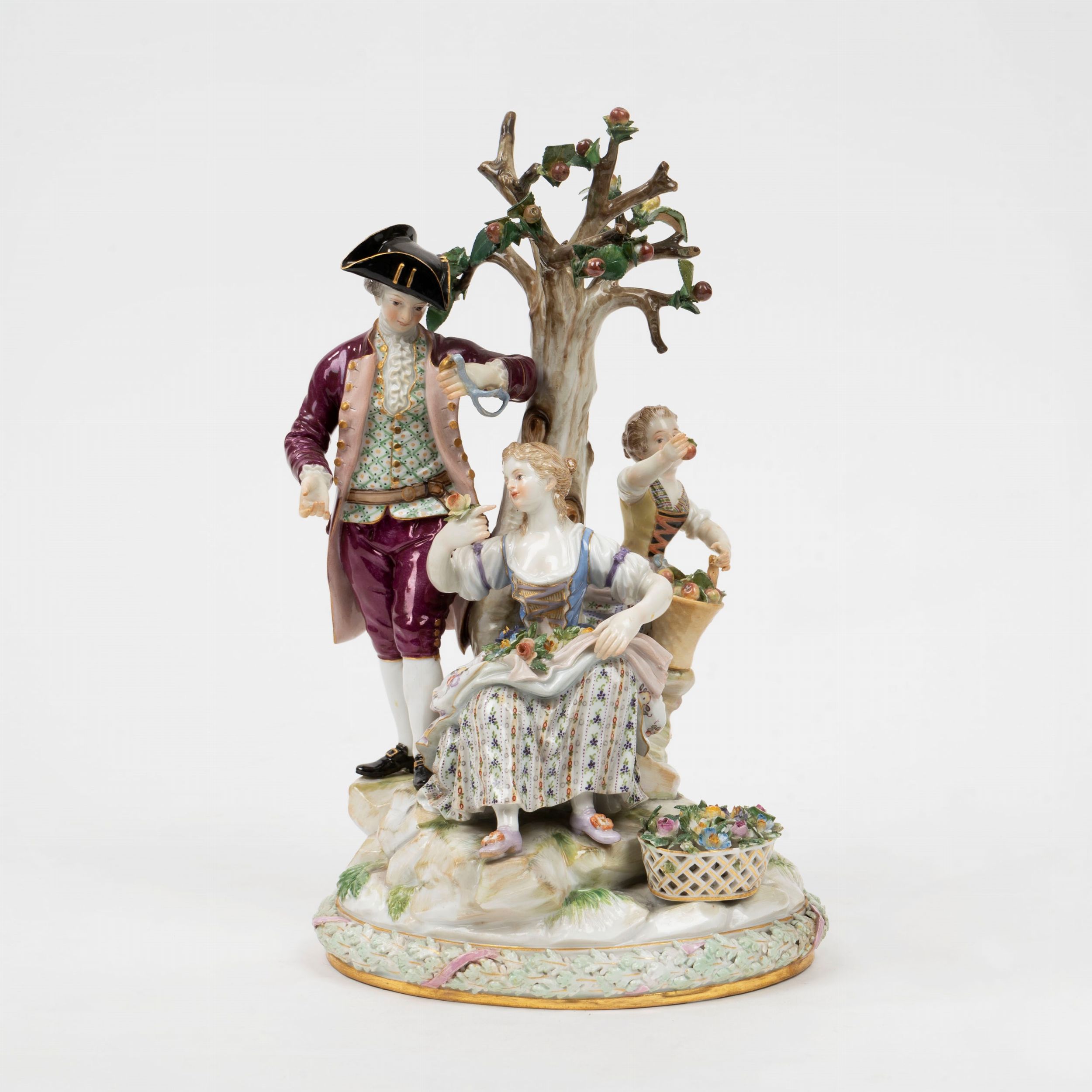 Gruppo scultoreo in porcellana policroma raffigurante scena galante, manifattura [..]