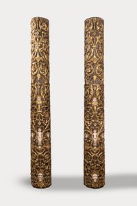 cm 248 x 30 leggermente rastremate, decorate a racemi, motivi vegetali e zoomorfi, teste di cherubini e putti [..]