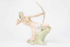 scultura in ceramica policroma, cm 37 x 15 x 11 restauro sul cappello marchio sotto la base Royal Dux entro triangolo [..]