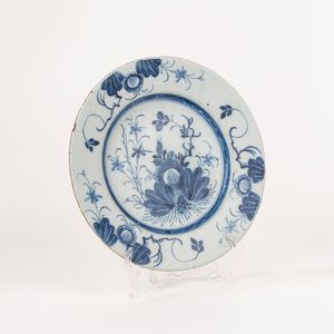 diametro cm 23 Con veduta del lago di Bolsena dipinta nel cavetto, tesa in verde e oro iscrizione sul retro Vue [..]