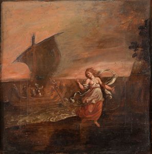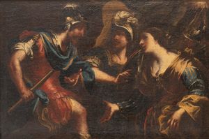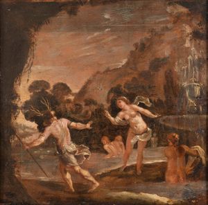 olio su tela, cm 34,2 x 50 entro cornice riccamente intagliata e dorata