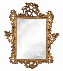 73 x 39 in legno intagliato e dorato, con motivi a rocaille, specchi al mercurio danni, mancanze e integrazion [..]