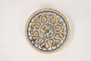 cm 36 x 35 decorazione all-over di punte di foglie evidenziate dalla patina Sienna  reca firma a punta di [..]