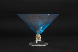 cm 33,5 x 16,5 x 11 lavorato all'acido con decori a tralci di vite e uva, collo e base in argento collo sbalzato [..]