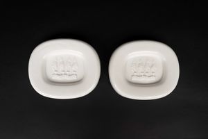 cm 45 x 55 x 40 ciascuno in legno intagliato, laccato e dorato difetti e mancanze