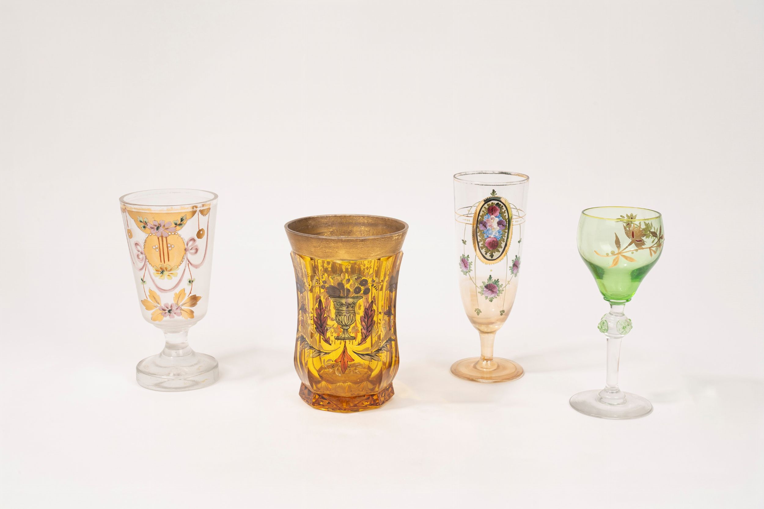 uno in cristallo di Boemia, due in vetro dipinti con smalti