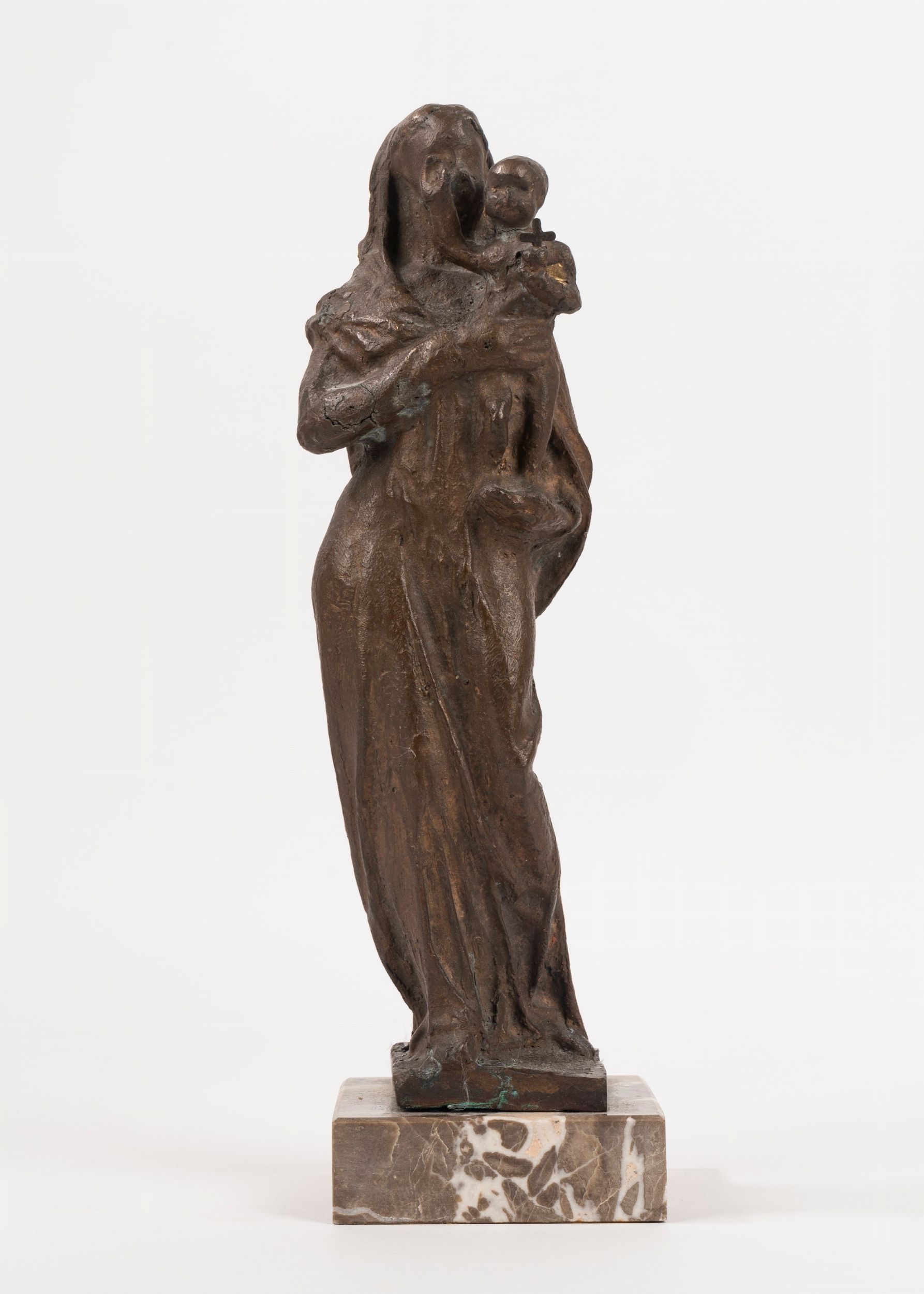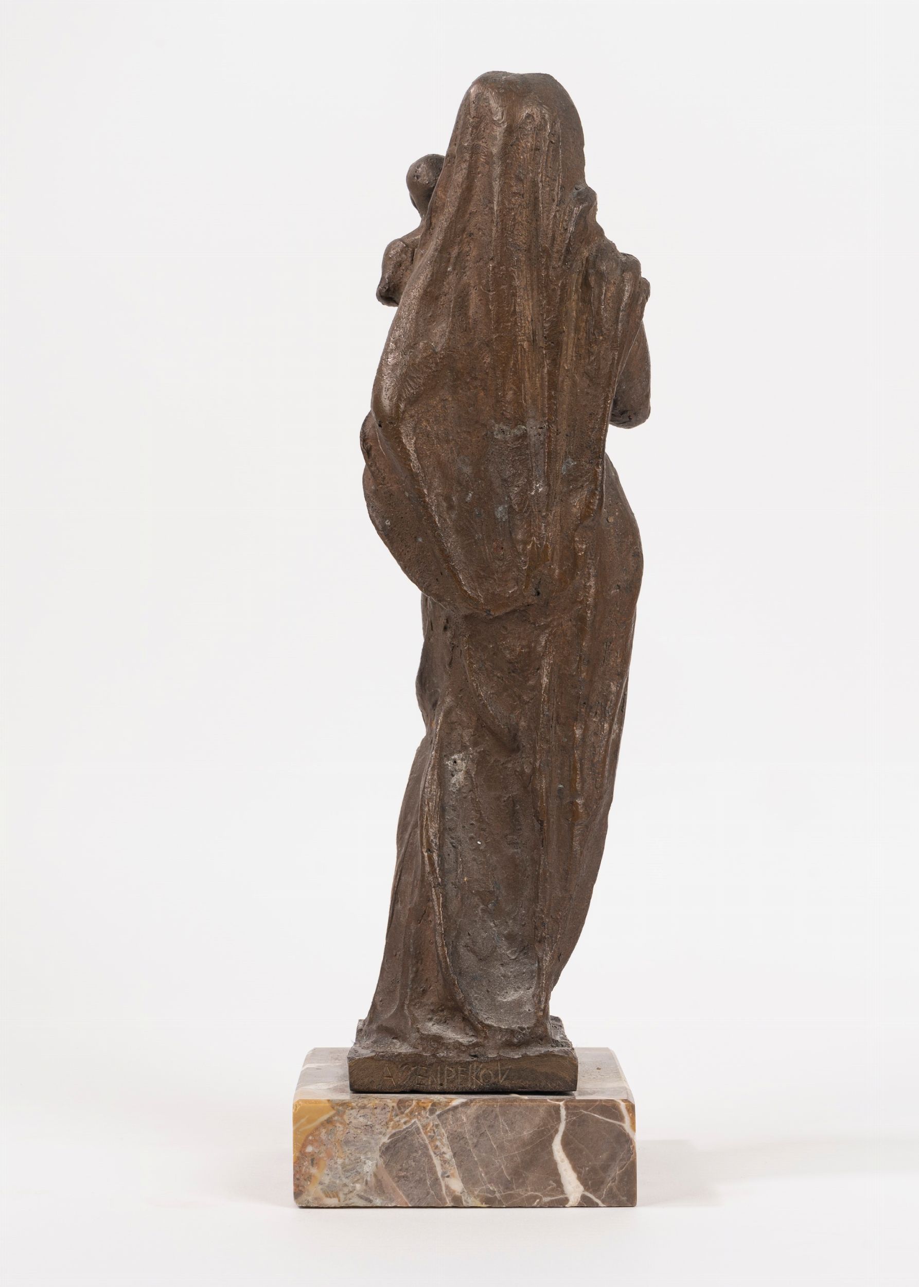 scultura in bronzo a patina scura su base in marmo, cm 34 x 10 x 10