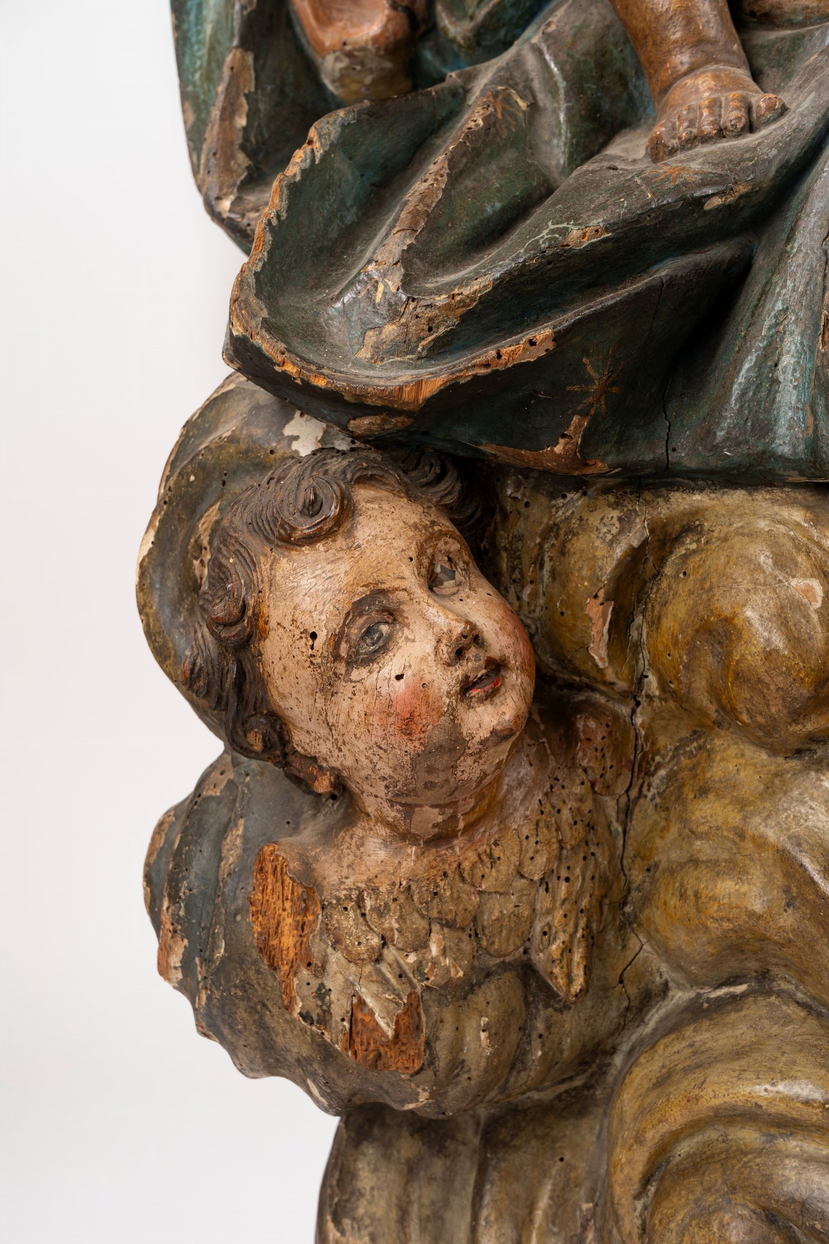 scultura in legno intagliato e laccato policromo, cm 100 x 60 x 50