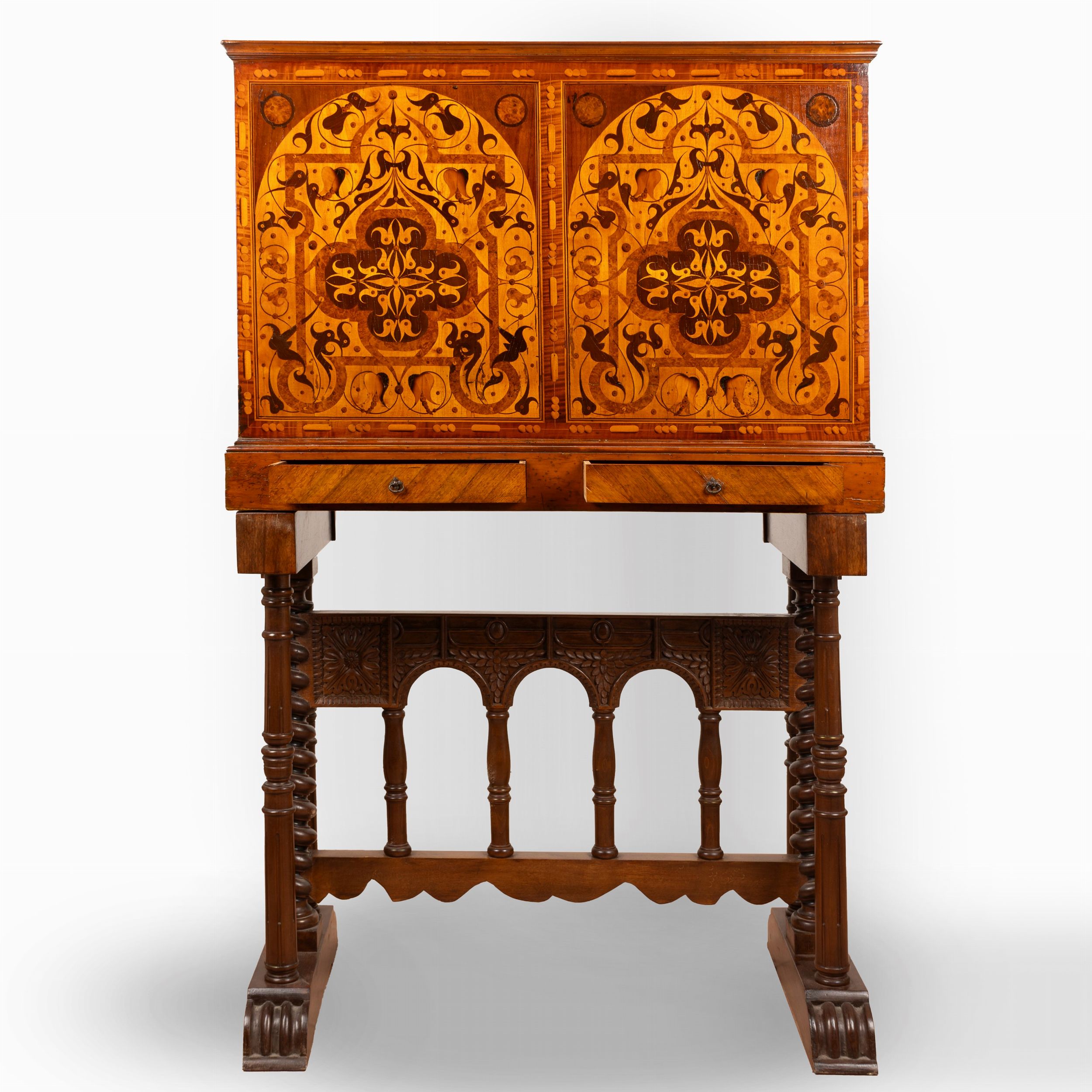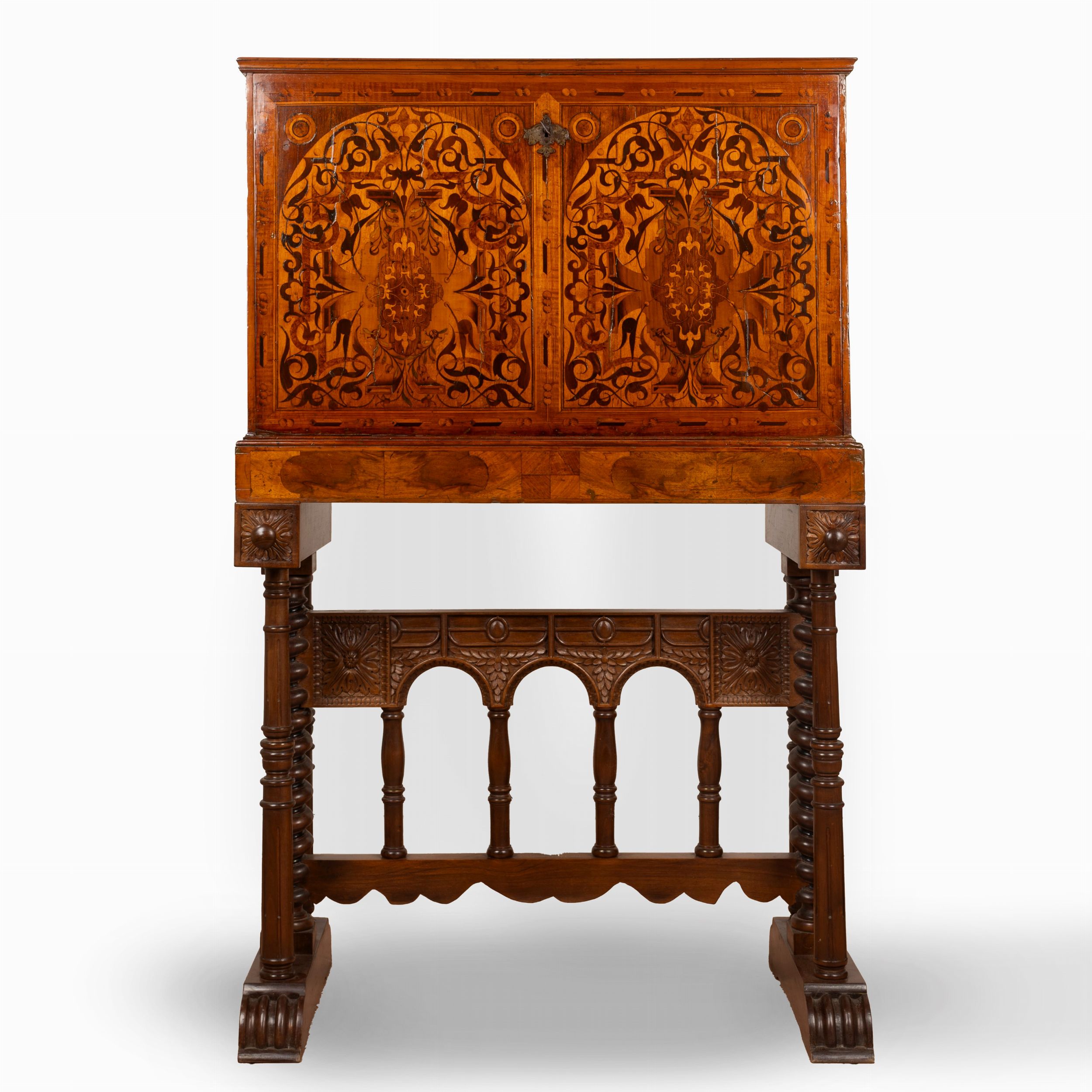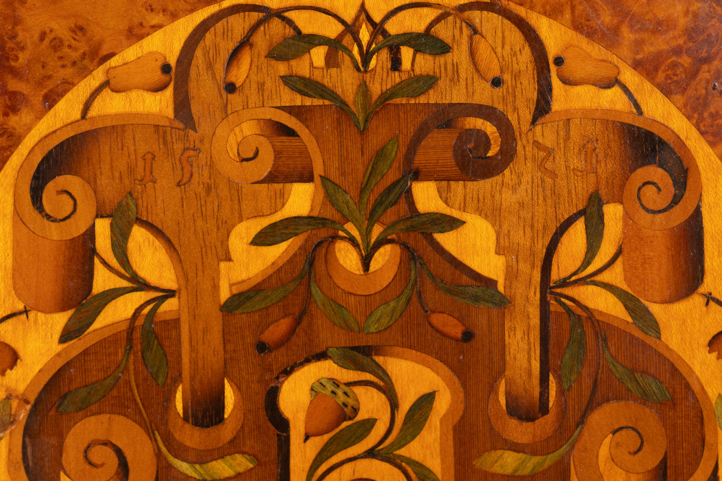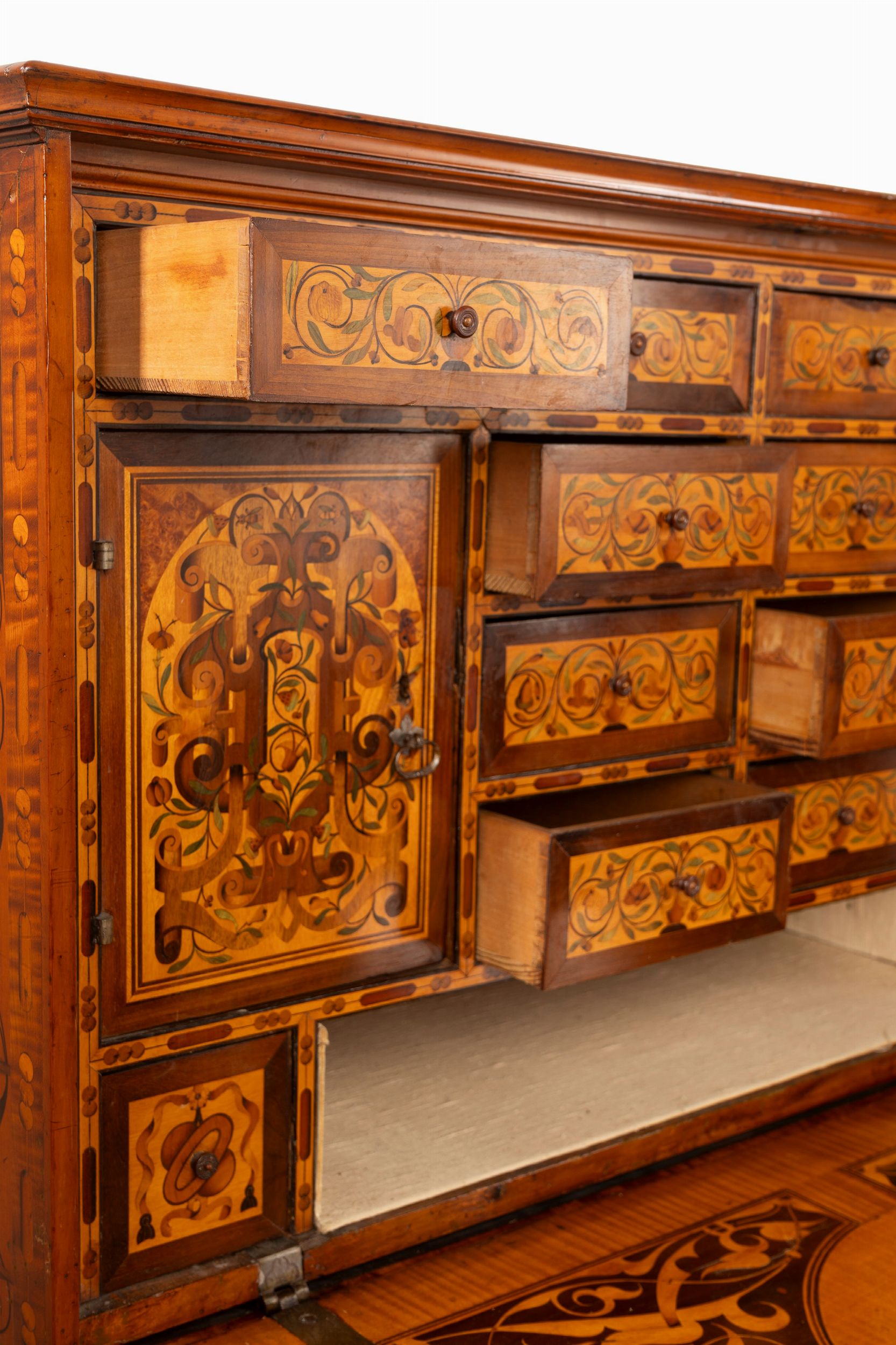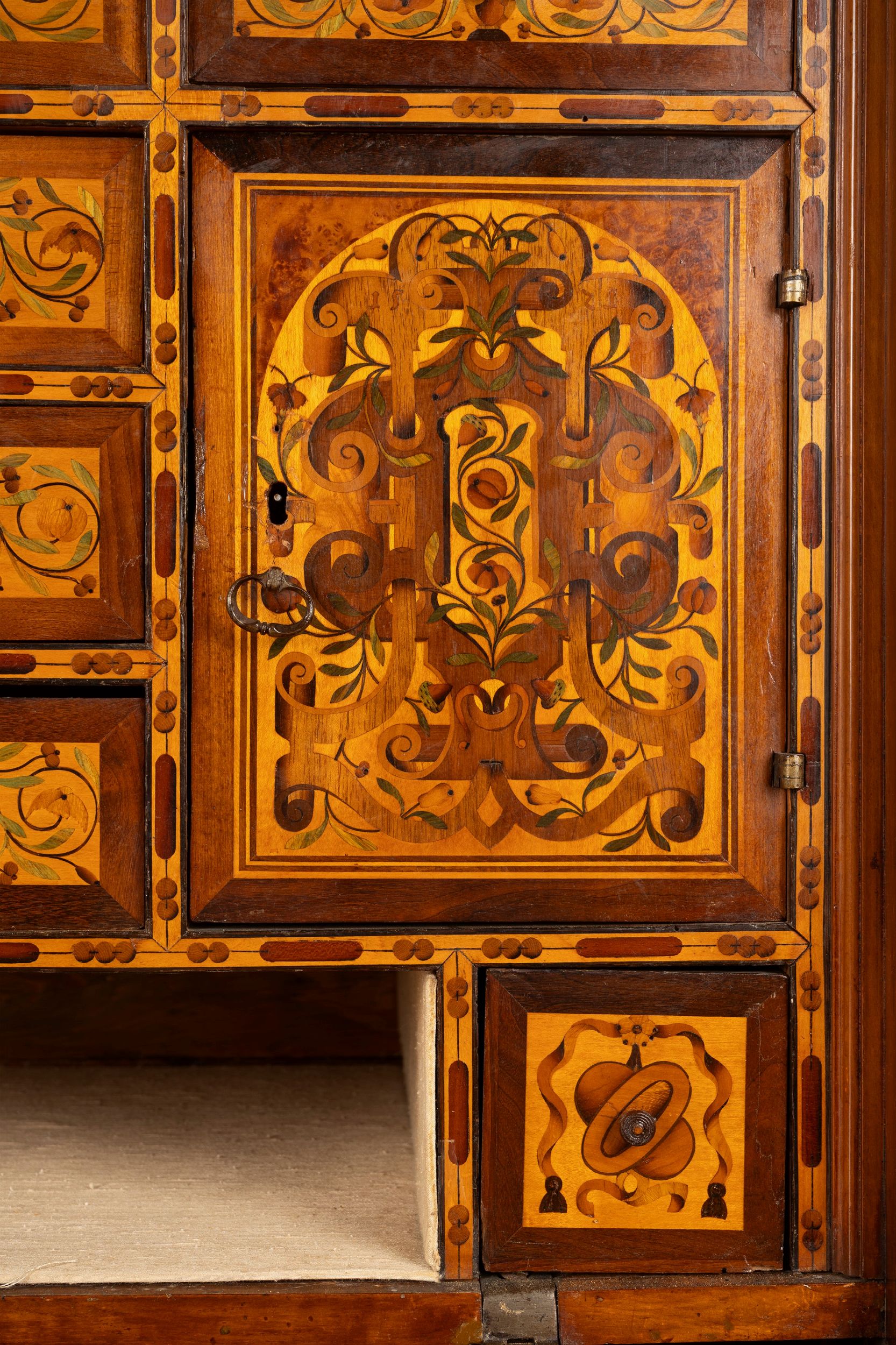 Monetiere intarsiato in legni vari, Germania, secolo XVI