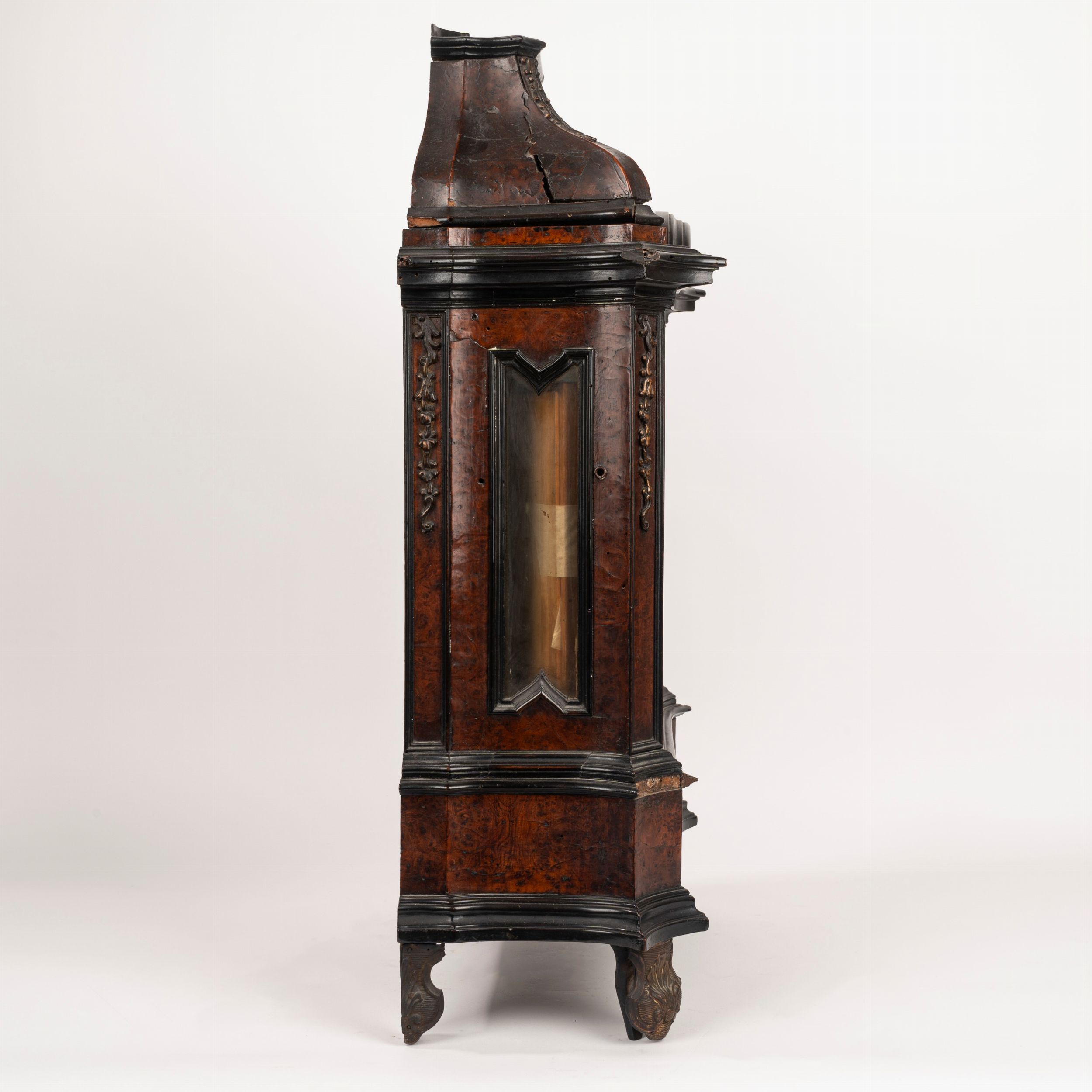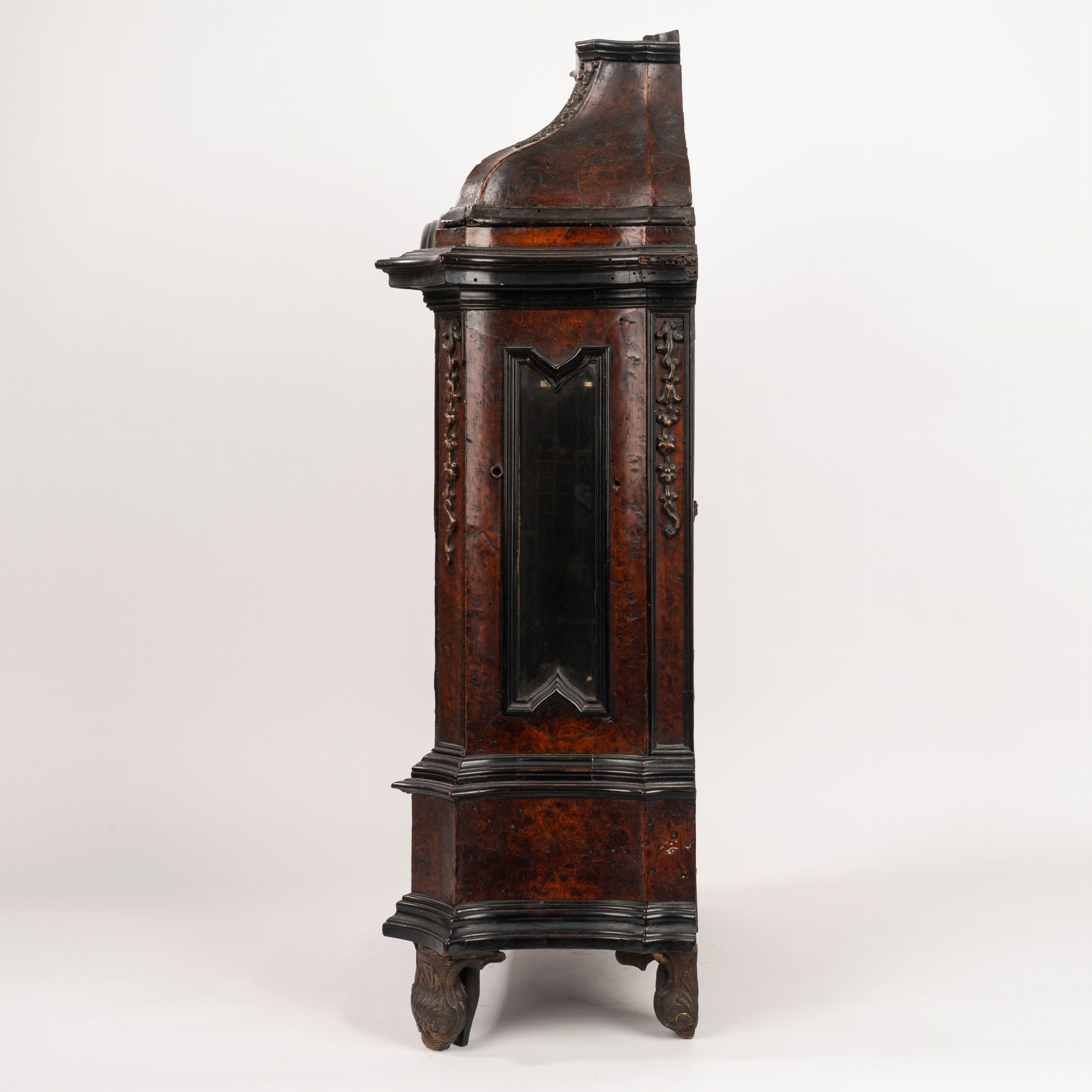 Pendola da tavolo in radica, secolo XVIII