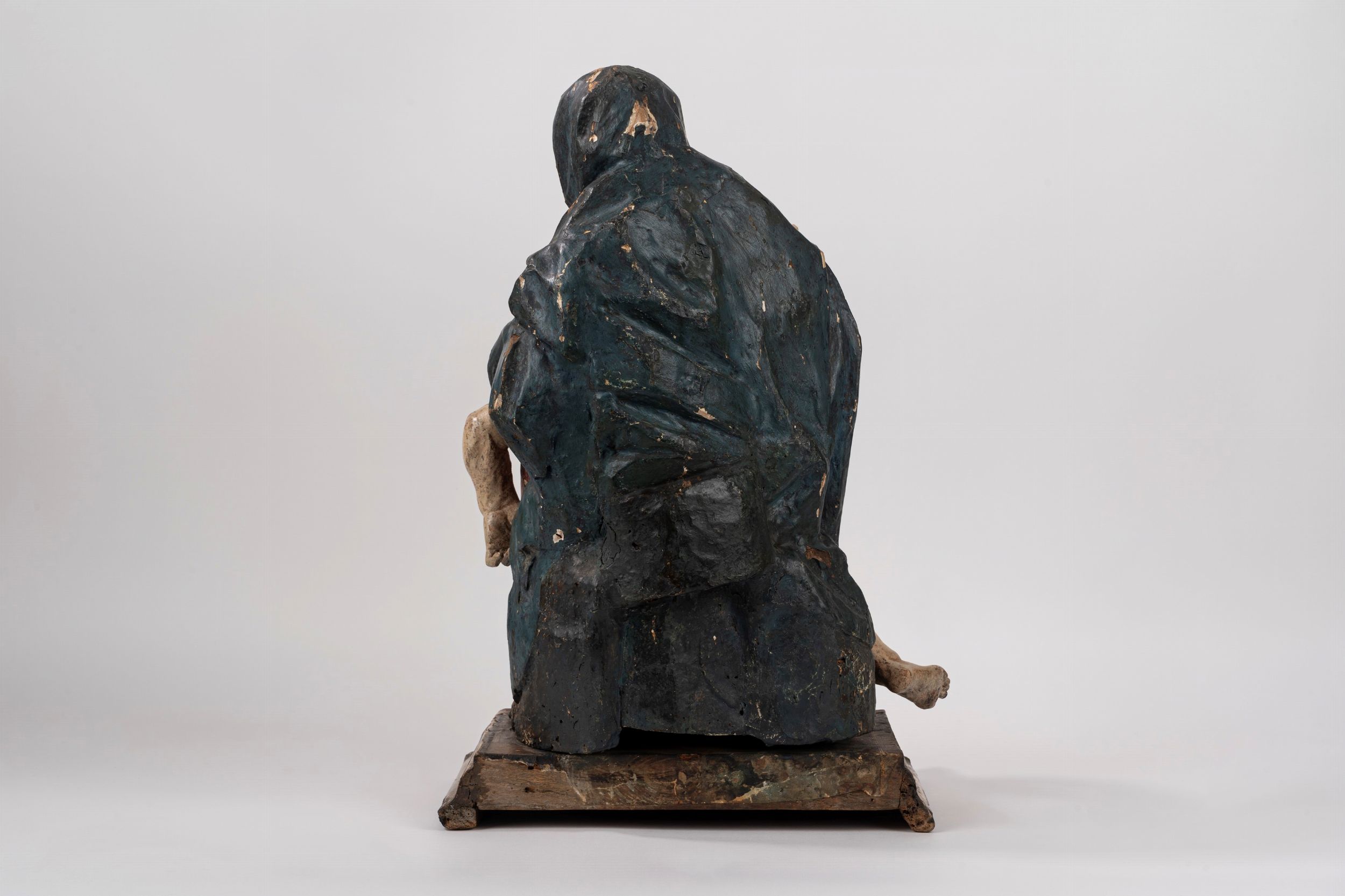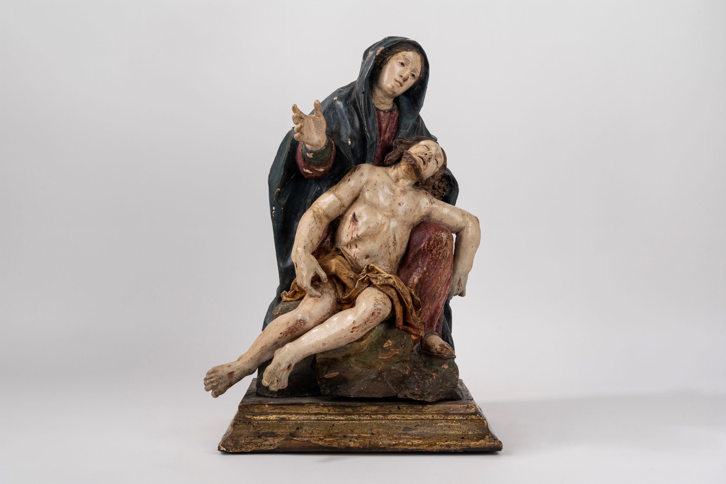 scultura in legno intagliato, laccato policromo e doratura a mecca, cm 52 x 33,5 x 23
