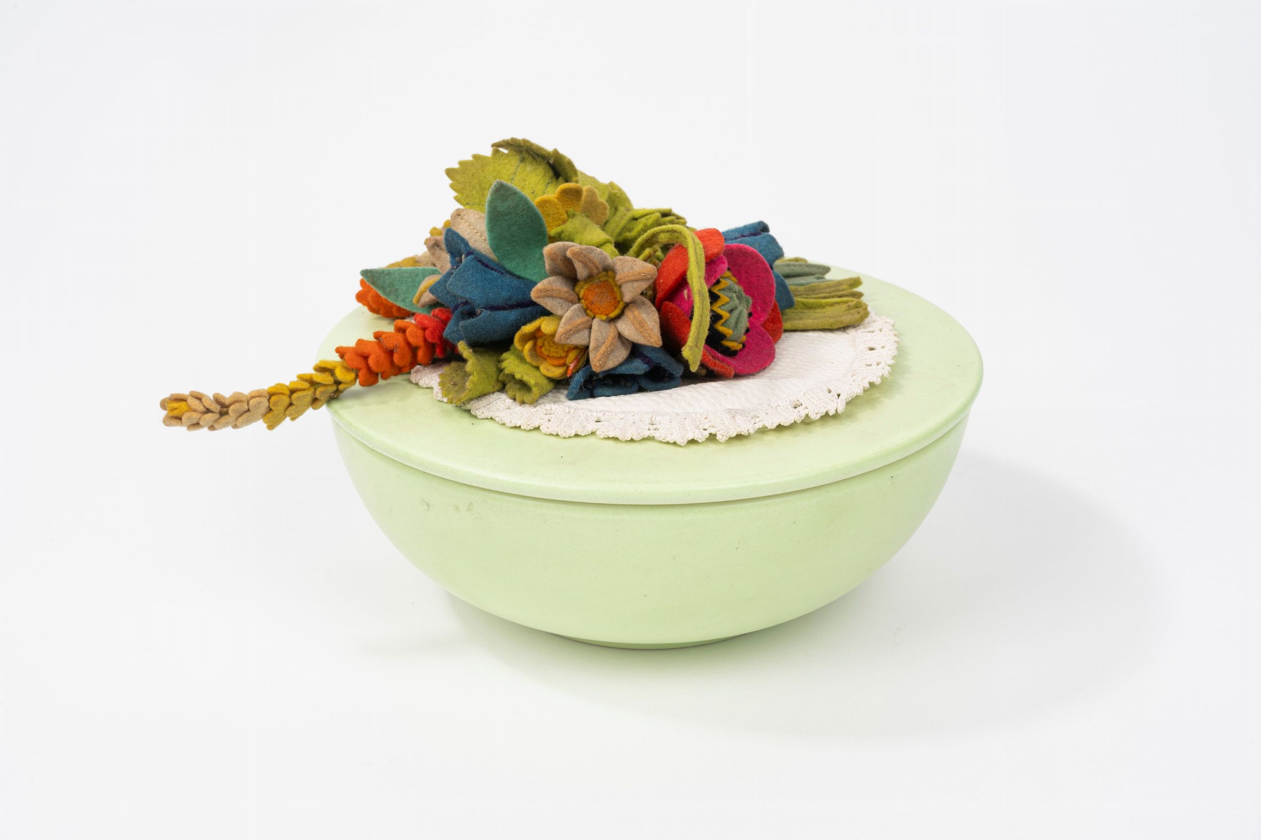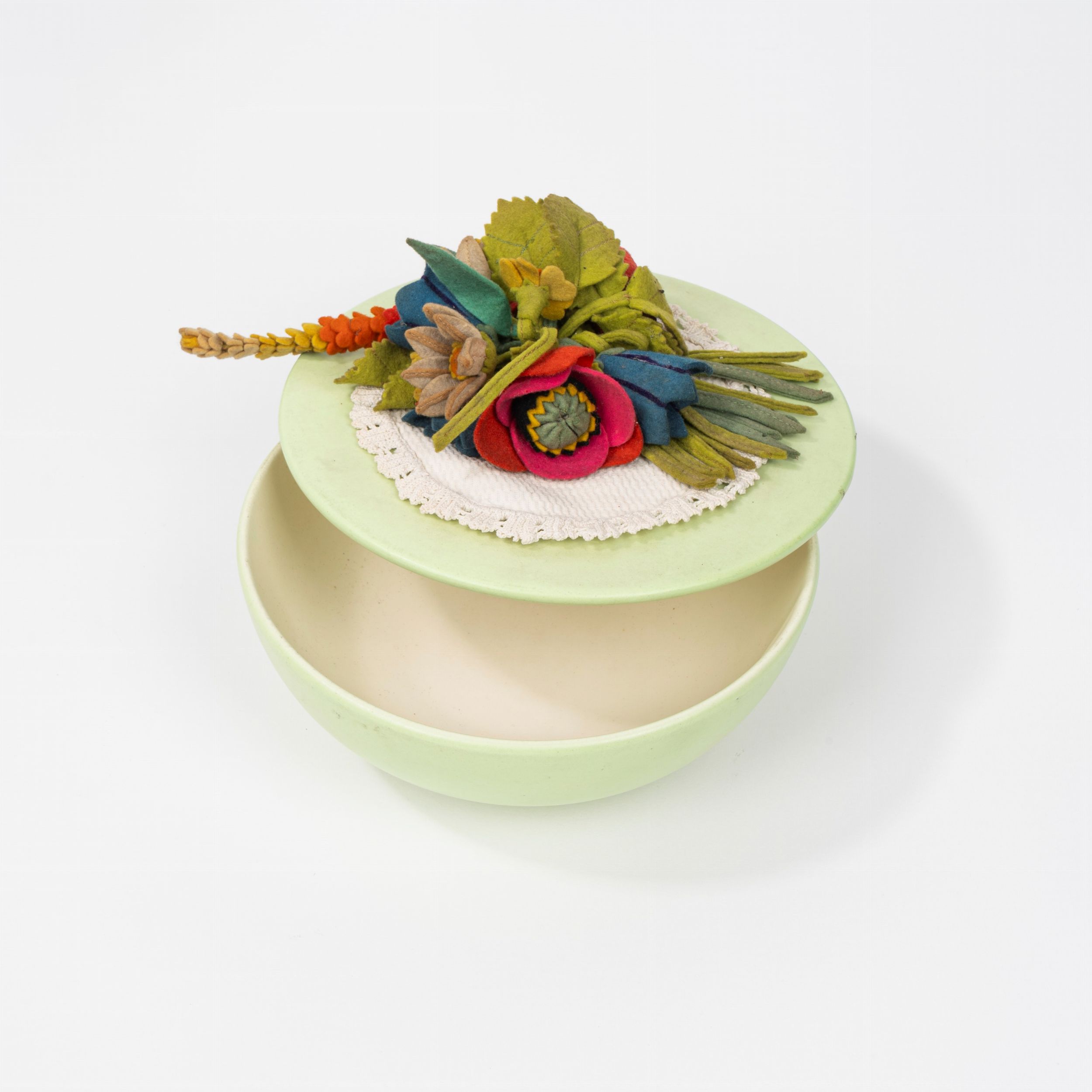 Porta bon bon in ceramica con coperchio decorato con composizione floreale in pa [..]