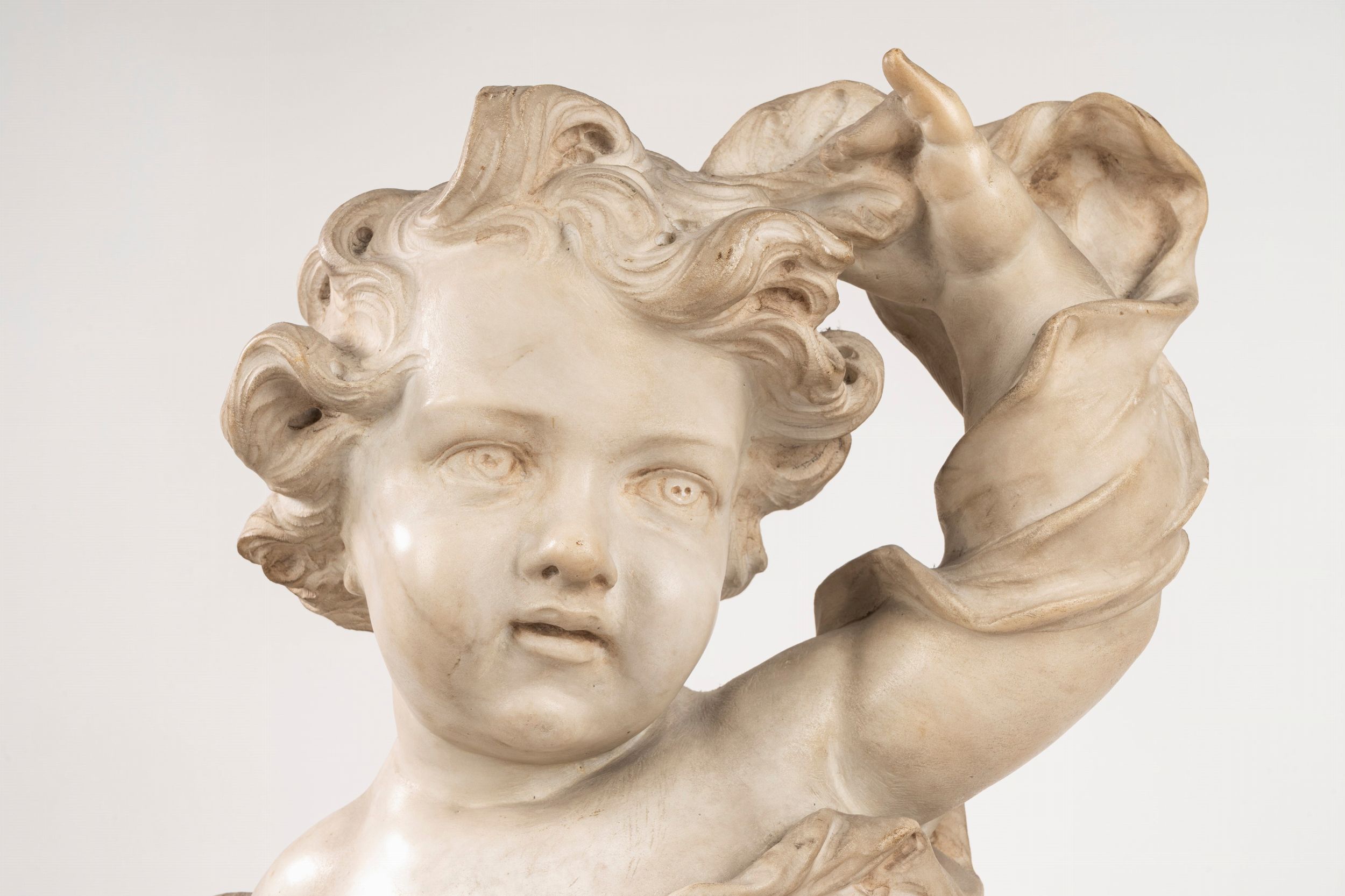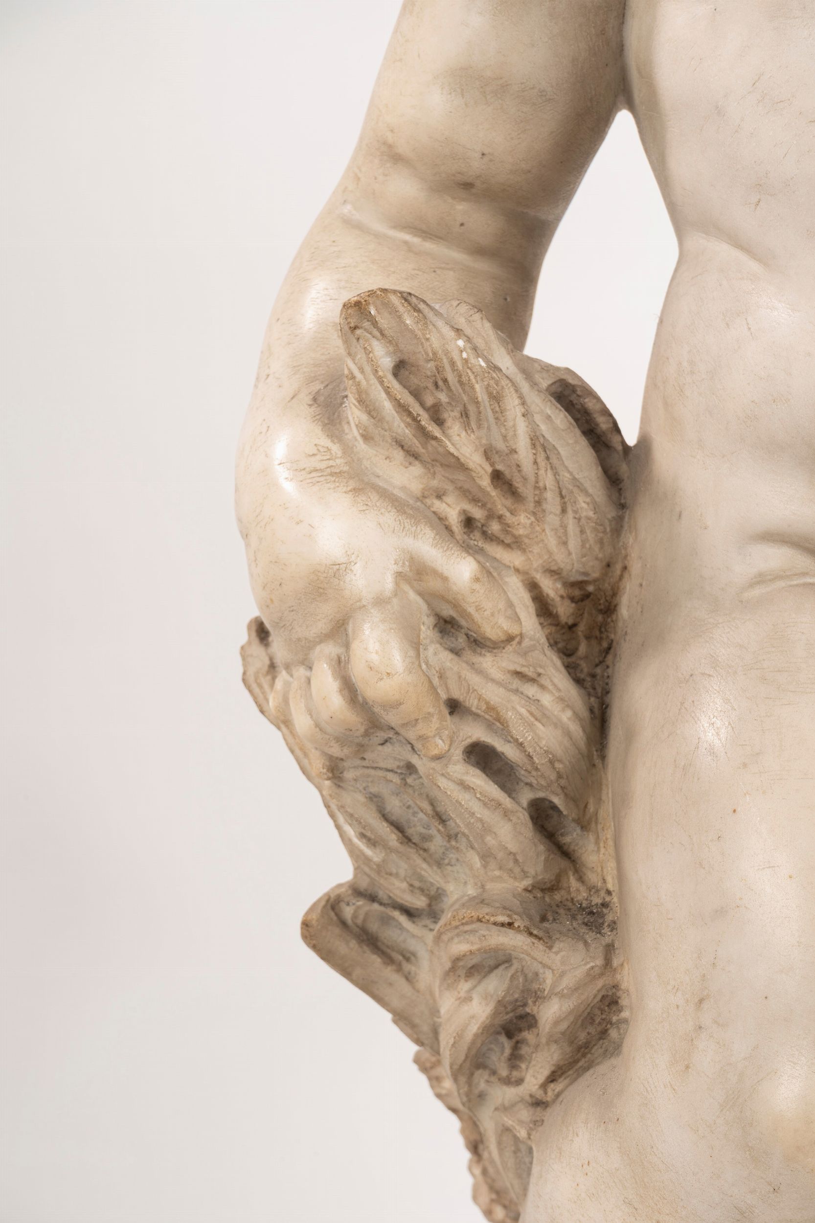 coppia di sculture in marmo bianco statuario, altezza cm 71 e cm 75