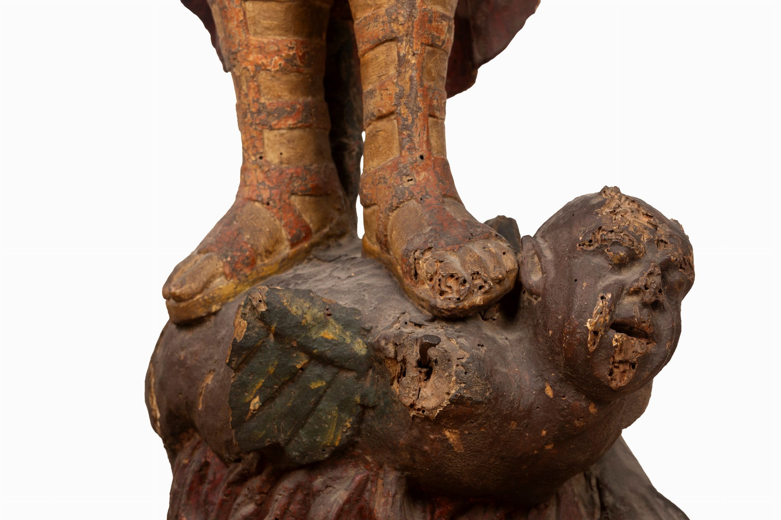 scultura in legno intagliato e laccato policromo, cm 138 x 43 x 35