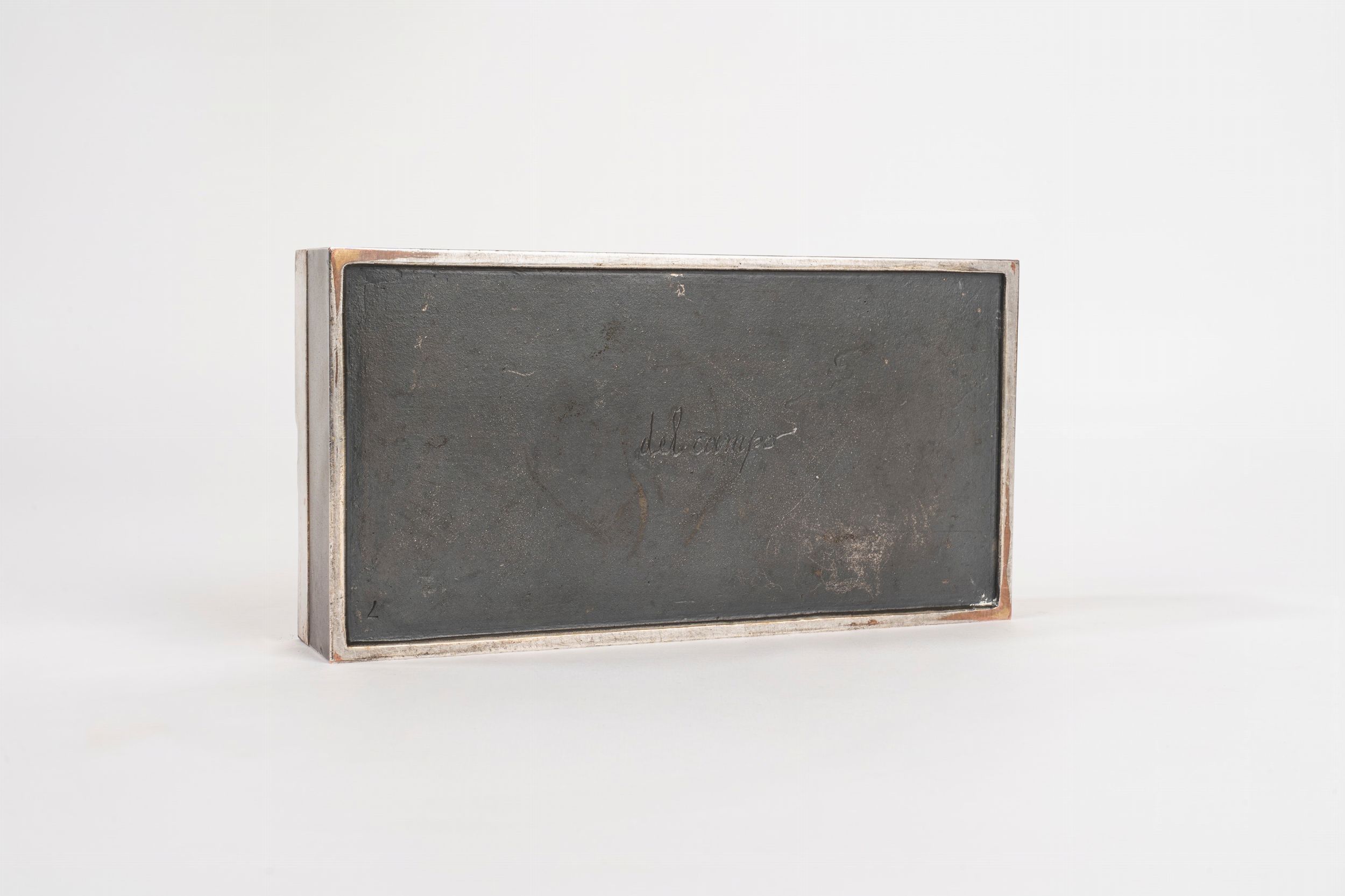 Scatola in fusione di bronzo modellata a rilievo con smalti, secolo XX