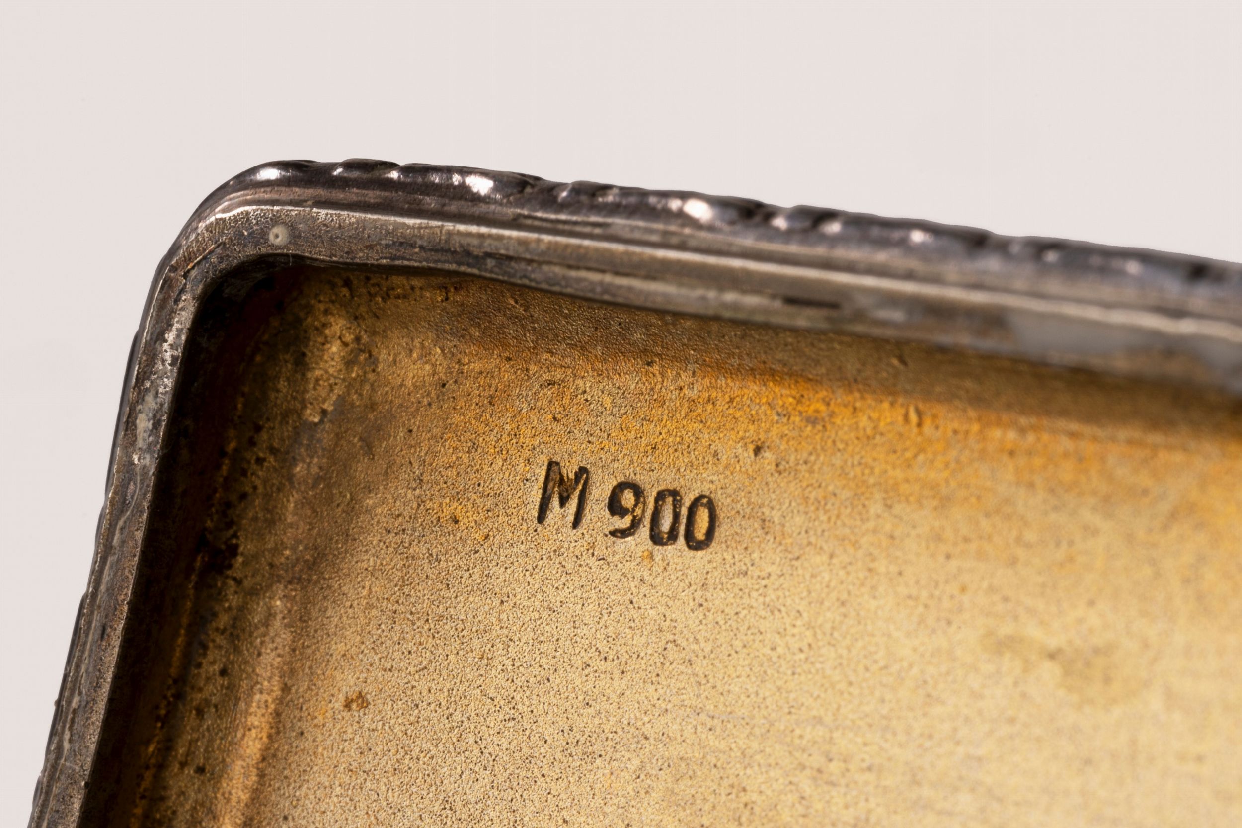 Scatolina in argento con placca sul coperchio in argento dorato, inizio secolo X [..]