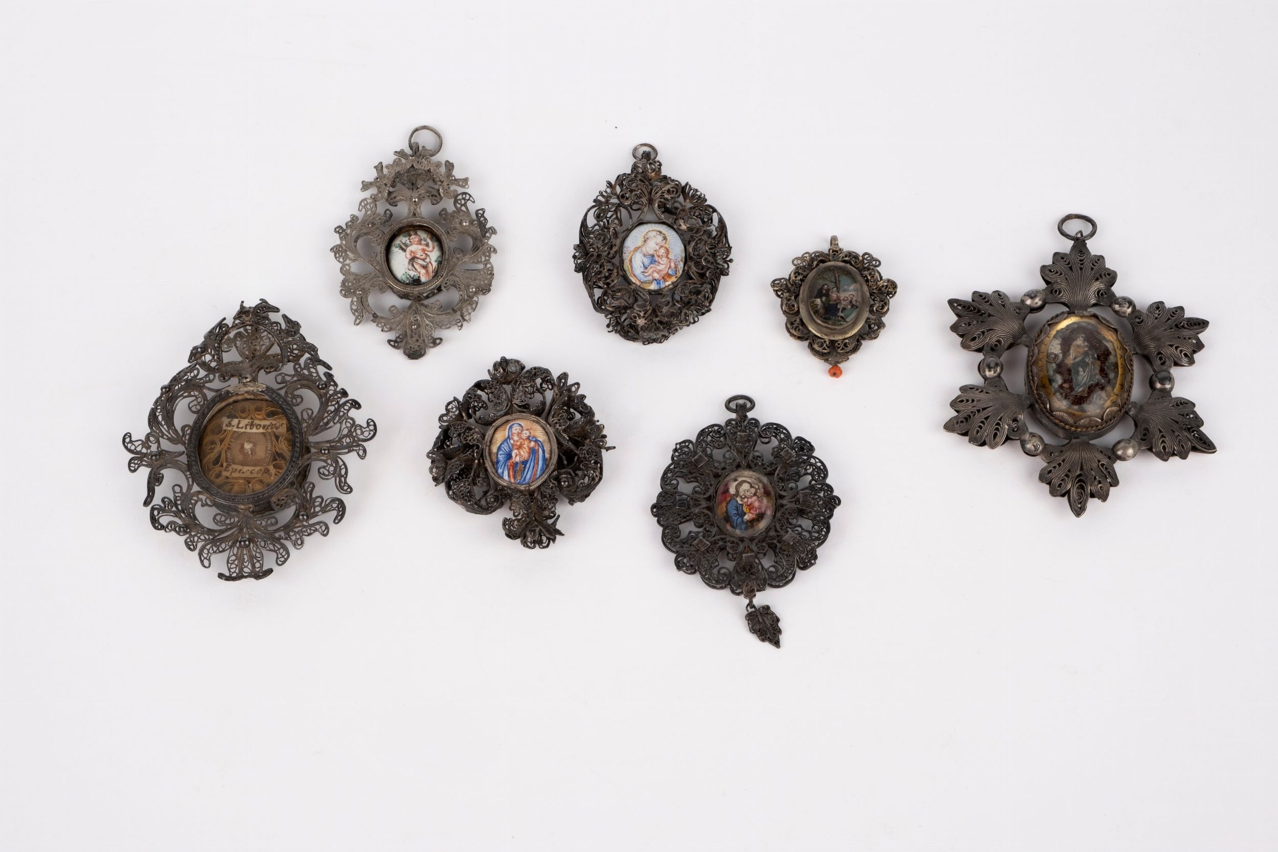 Sette pendenti in filigrana d'argento, Sicilia, secoli XVIII-XIX