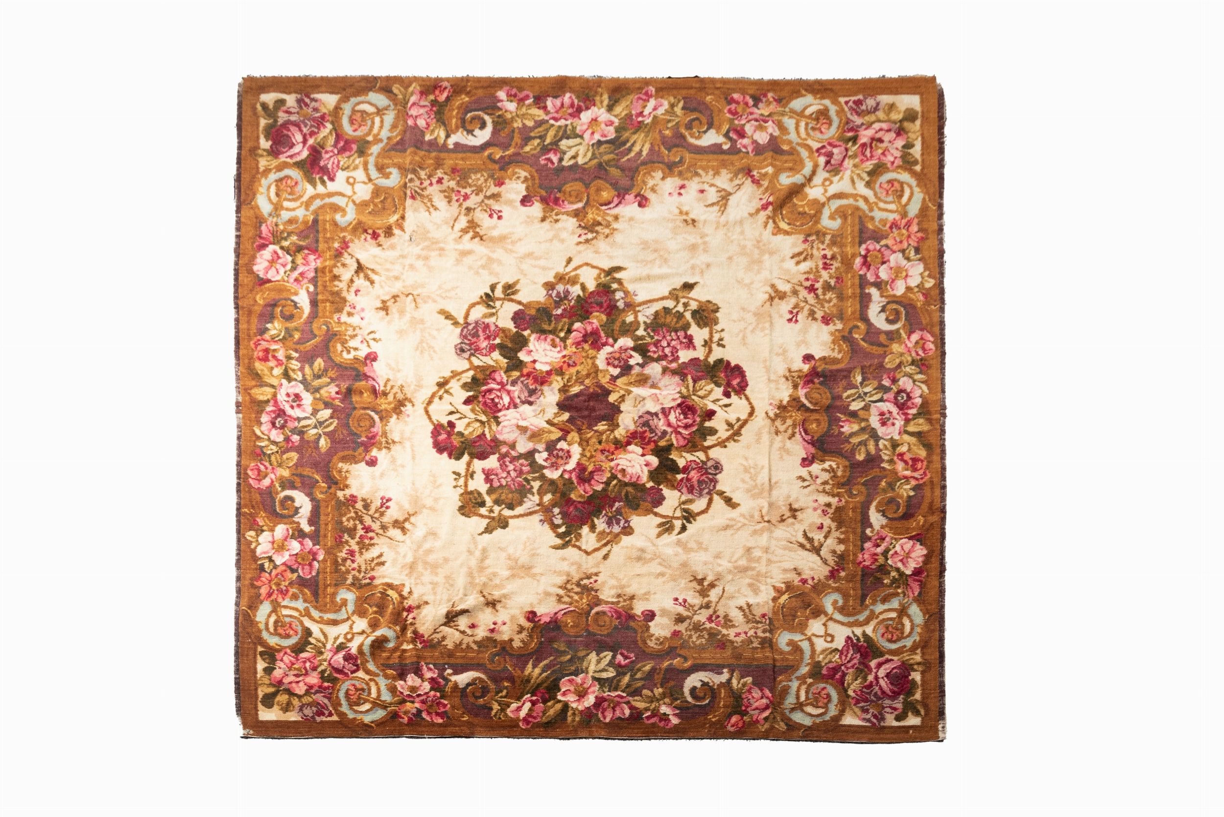 Tappeto Aubusson con motivo a rose, inizi secolo XX