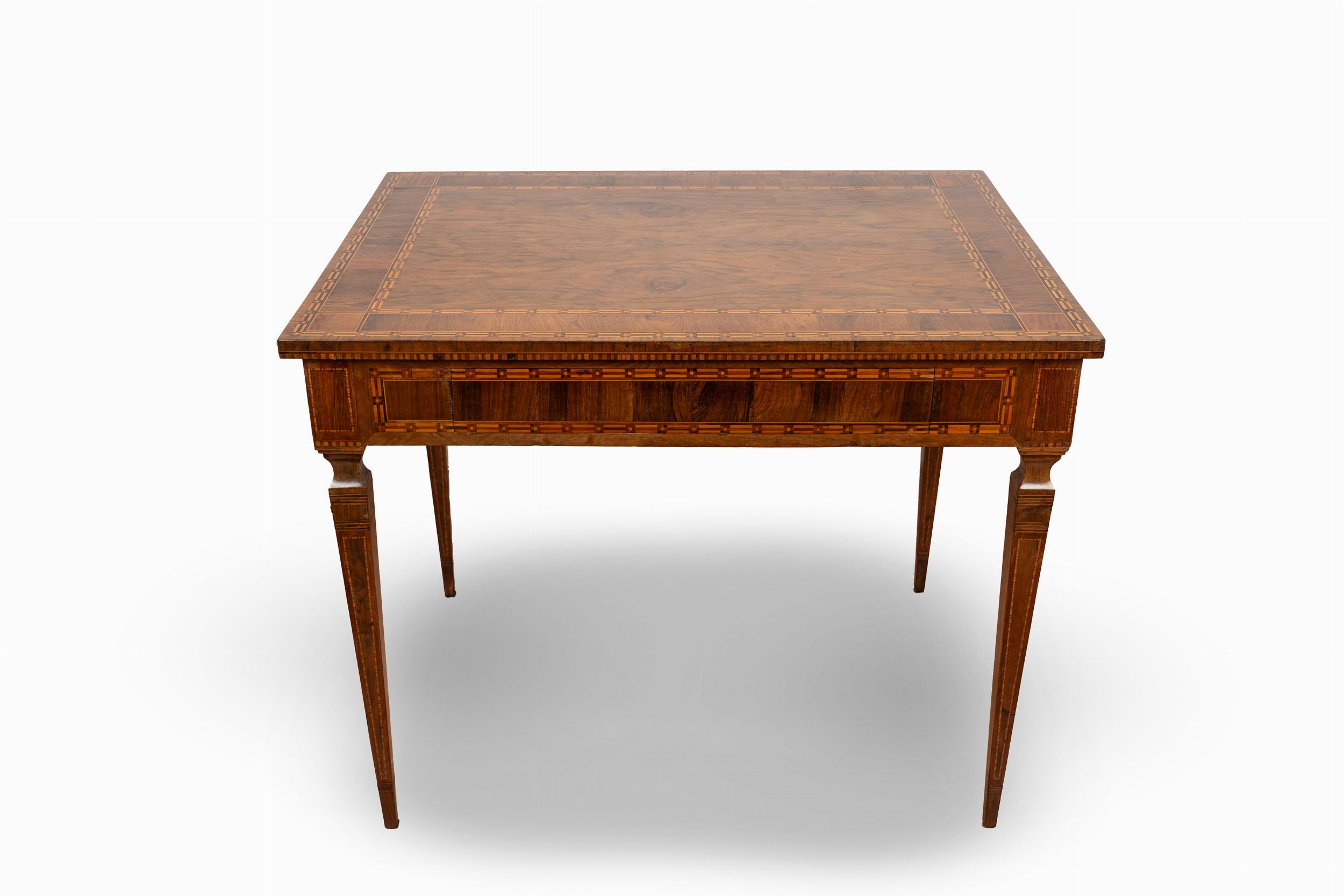 intarsiato in legni vari con filettature a motivi geometrici lievi difetti